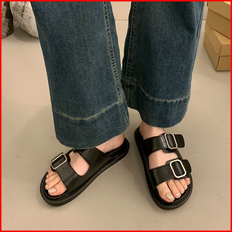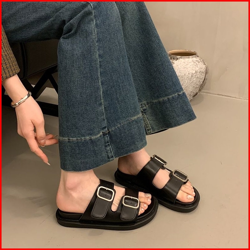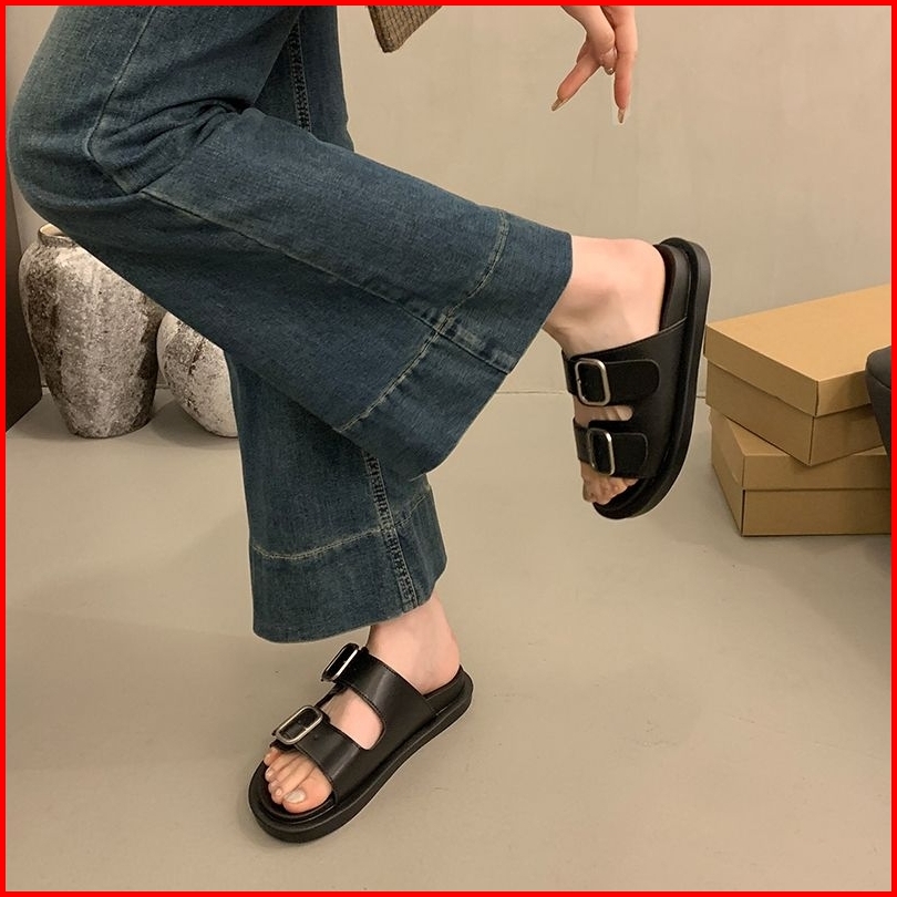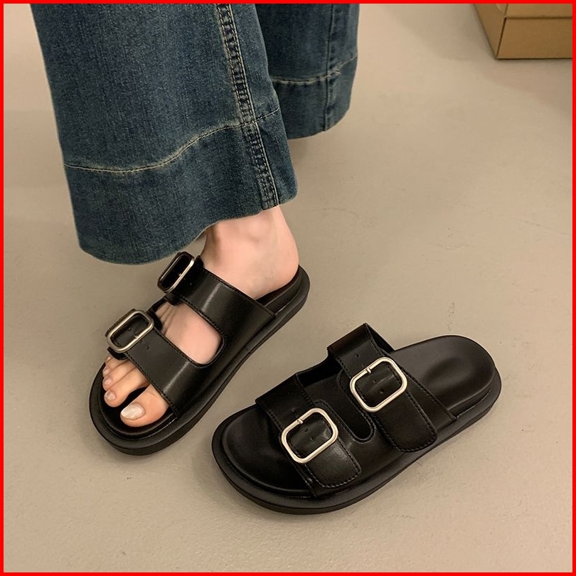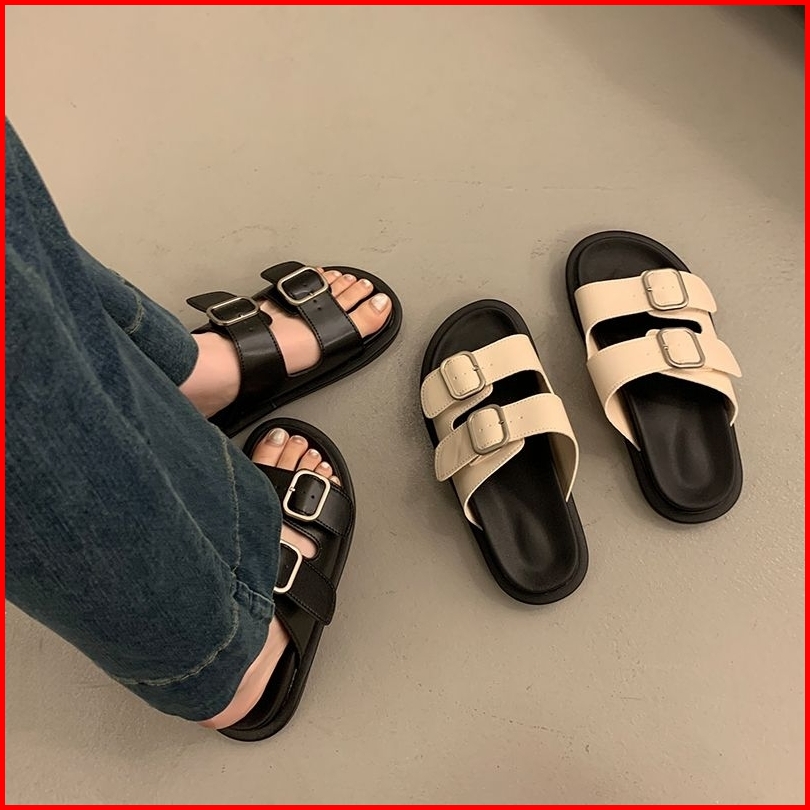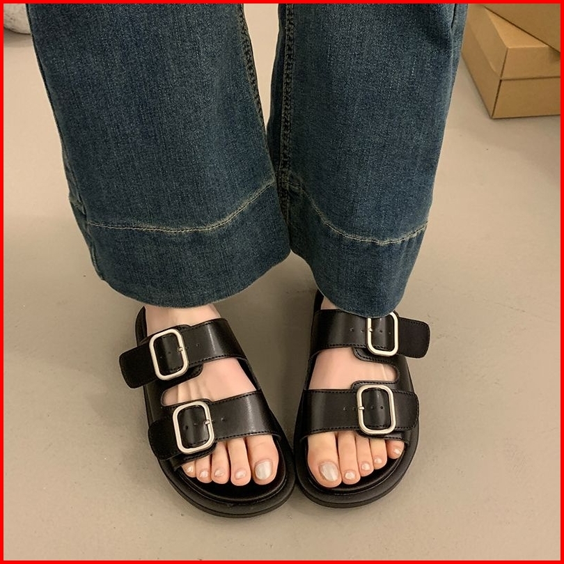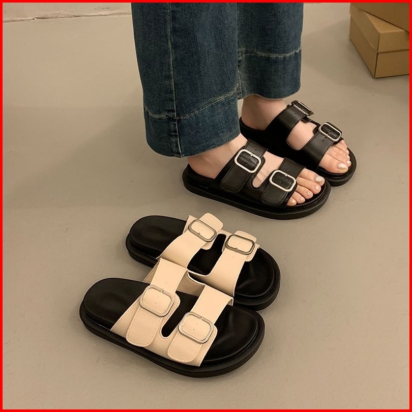 Nf1199 - Sandal Double Strap Kulit Fashion Wanita