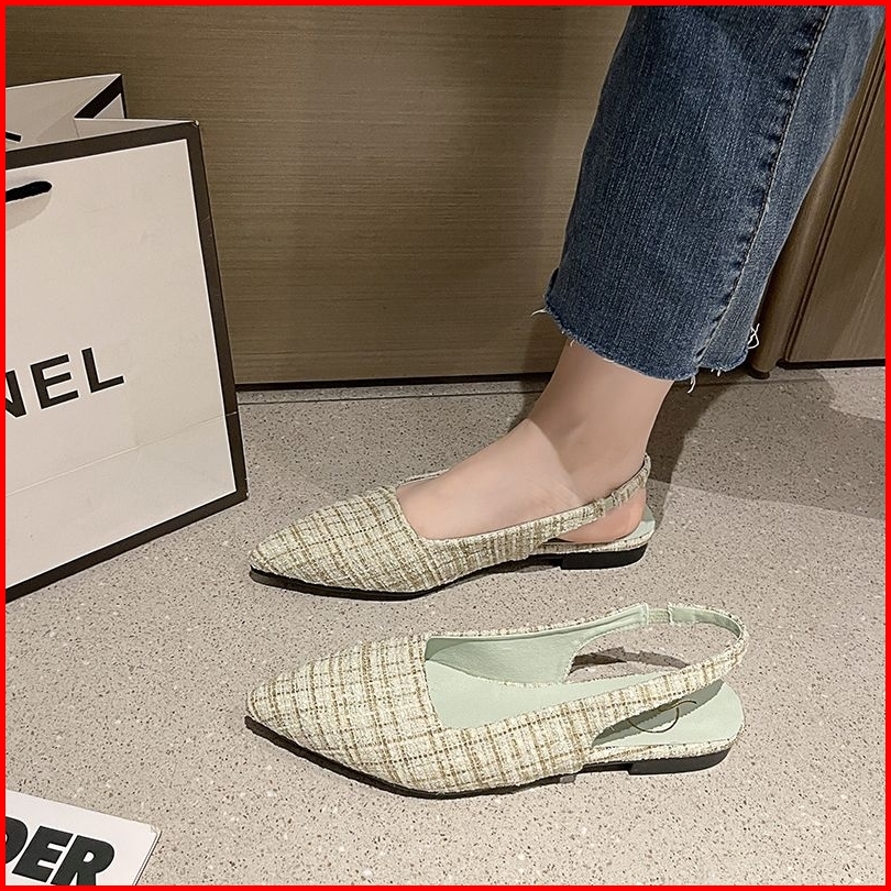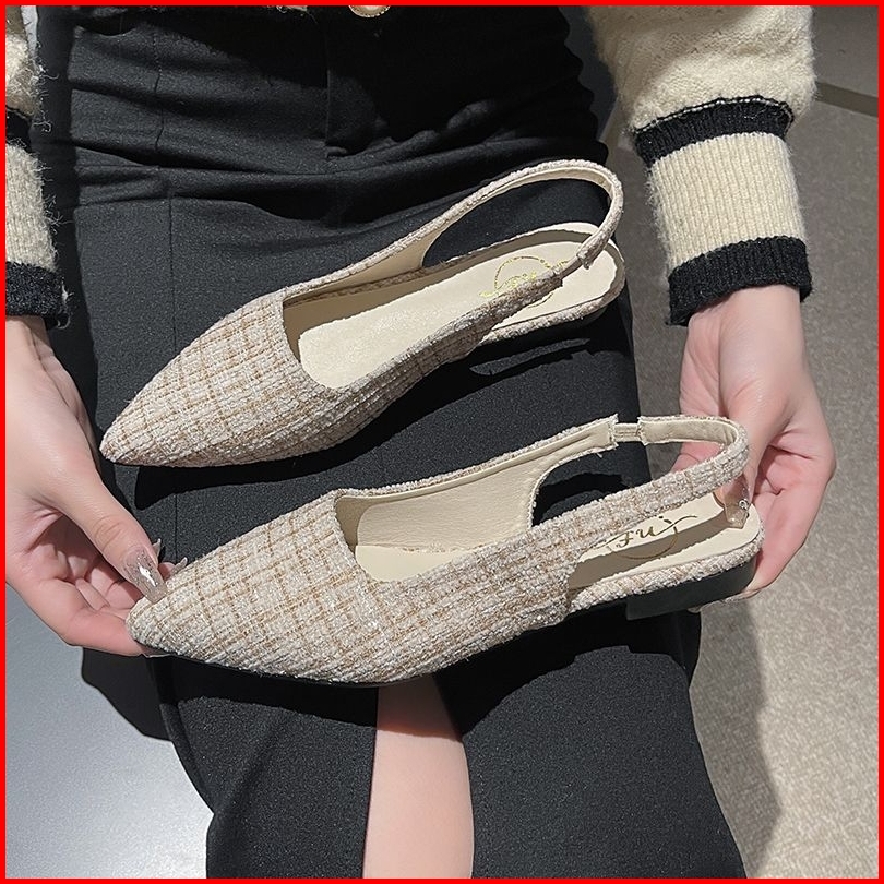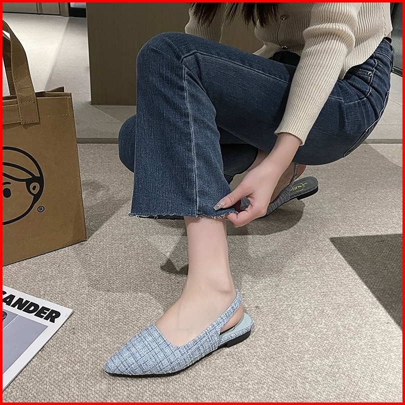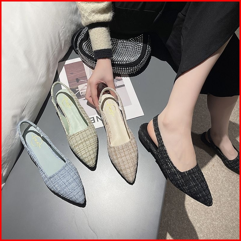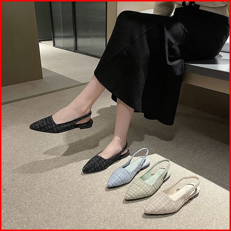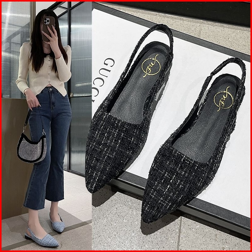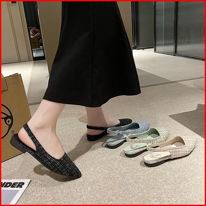 Nf4870 - Sandal Flat Shoes Tweed Wanita Sandal Flat Shoes Kekinian Sandal Premium - Sandal Tweed Nyaman Dipake