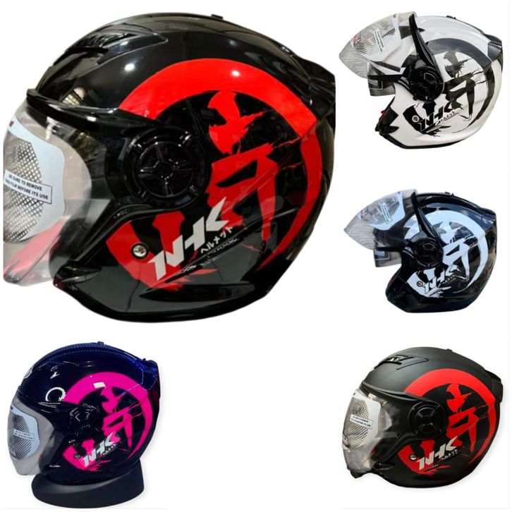 HELM NHK GLADIATOR KANJI BLACK RED GLOSS HELM OPEN FACE - M