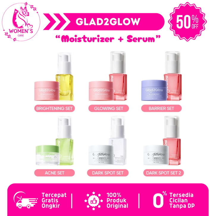 Women's Care - Glad2Glow Paket Skincare Brightening Moisturizer Gel + Serum Glowing Anti Acne
