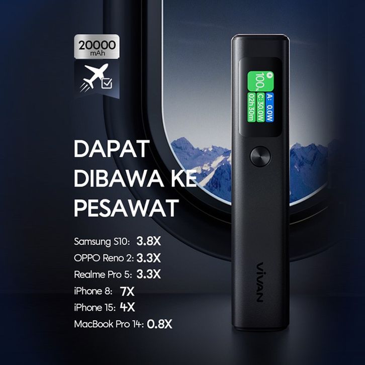 VIVAN Smart Powerbank VPB-T20 | 20.000 mAh 130W Two-Way Fast Charging | Smart Display | PD QC 3.0 | 9 Safety Protection