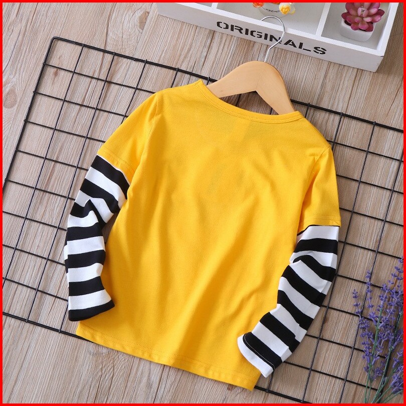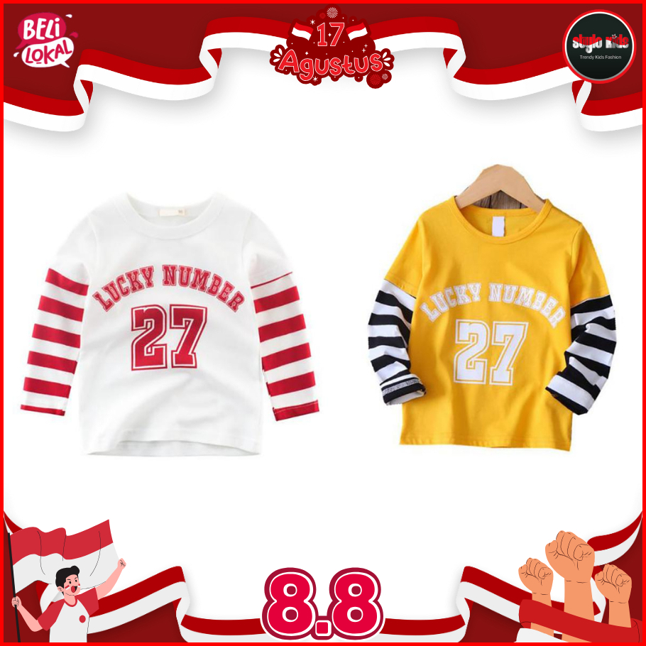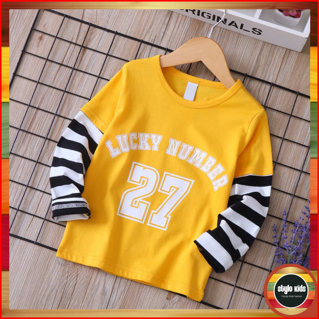 Stylokids Baju Kaos T-shirt Anak Laki-laki Dan Perempuan Lengan Panjang Motif Tulisan Warna Kuning Dan Putih