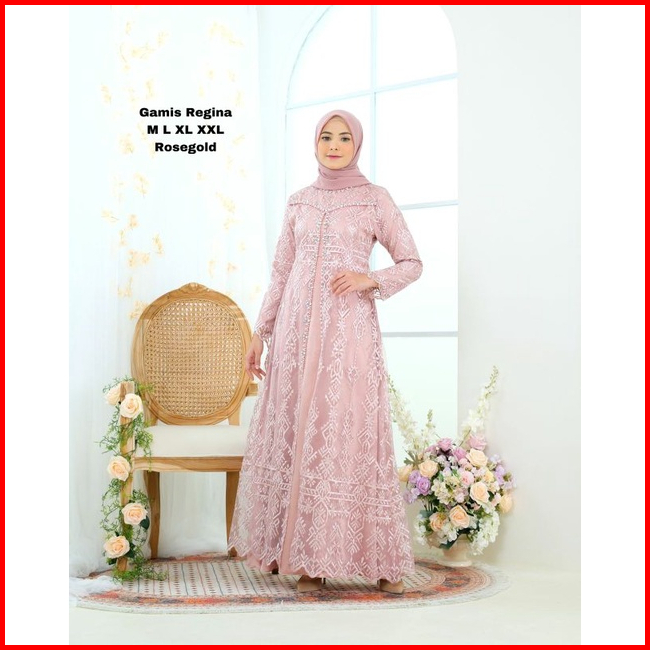 Regina Dress Lebaran Kondangan L Xl Xxl Premium Jumbo Mewah Gamis Muslim Produk Terbaru Milo Taro Rosegold Hitam Sage