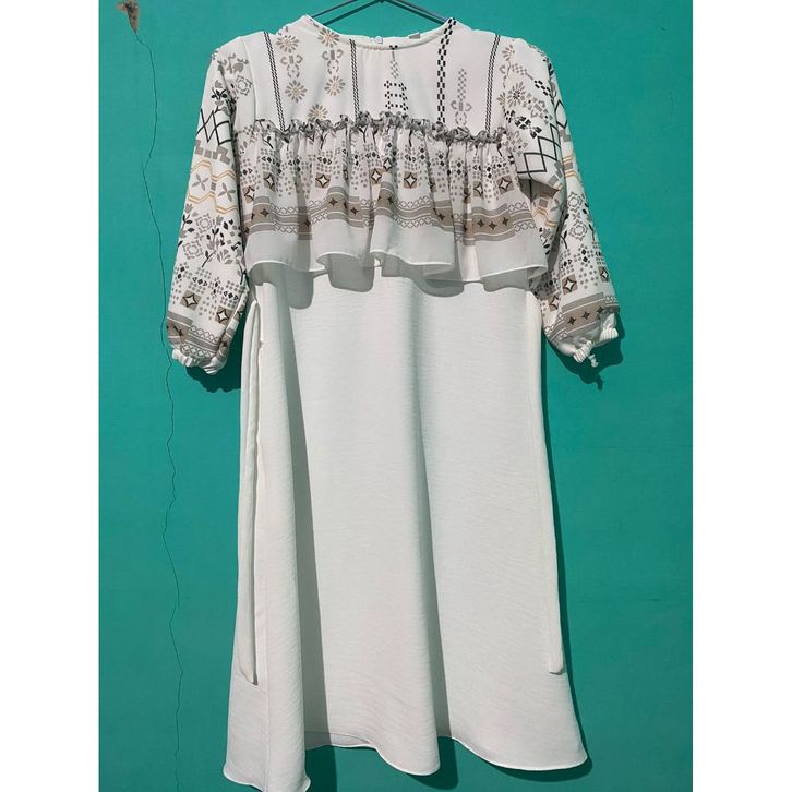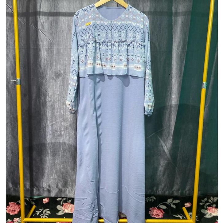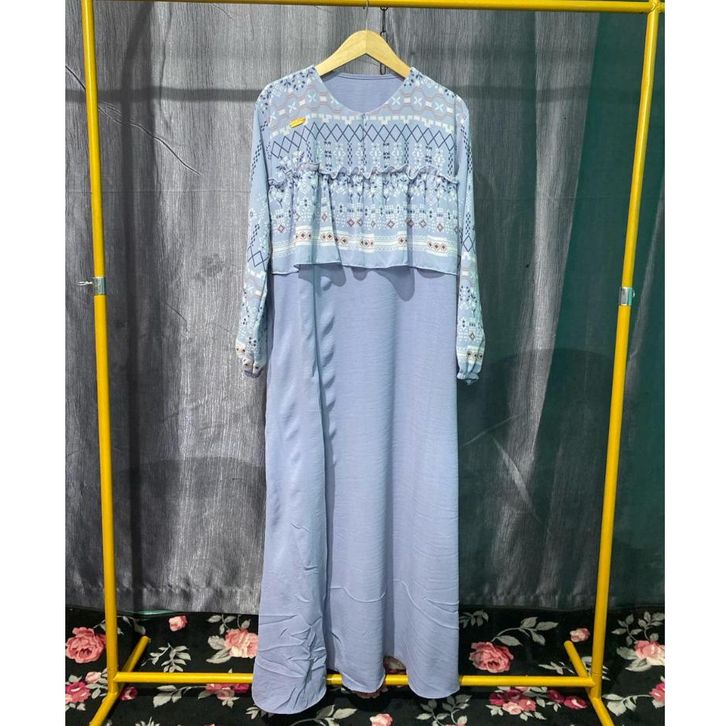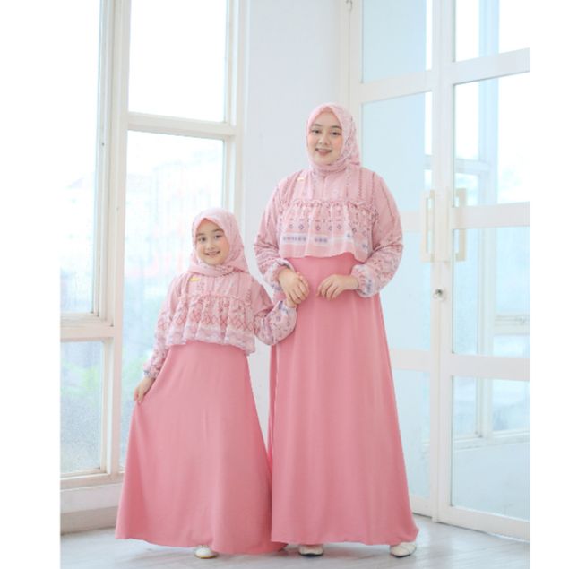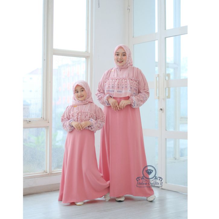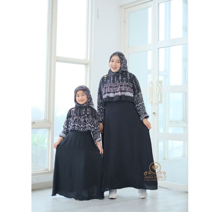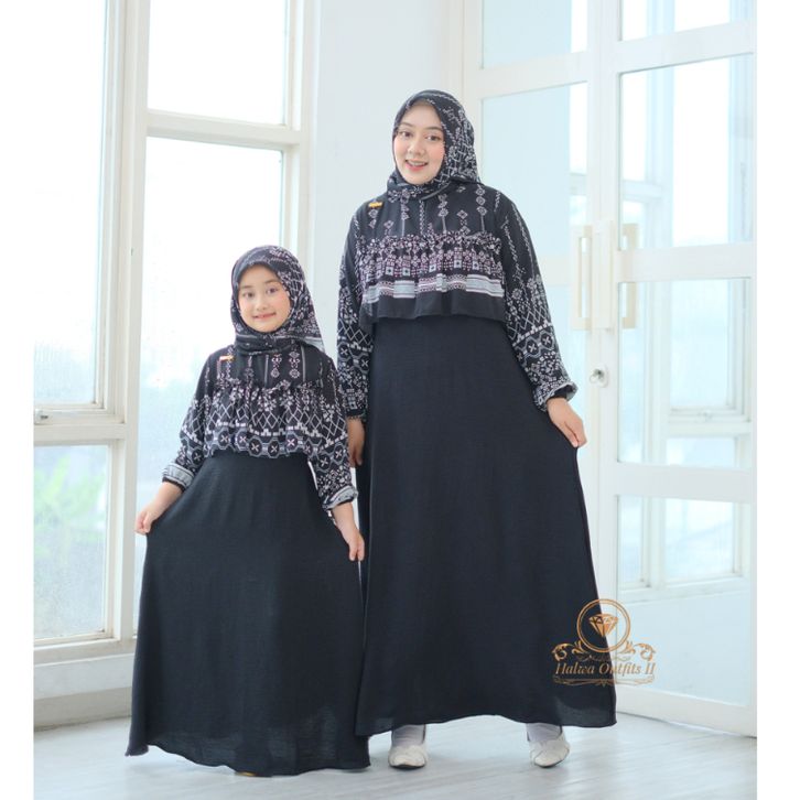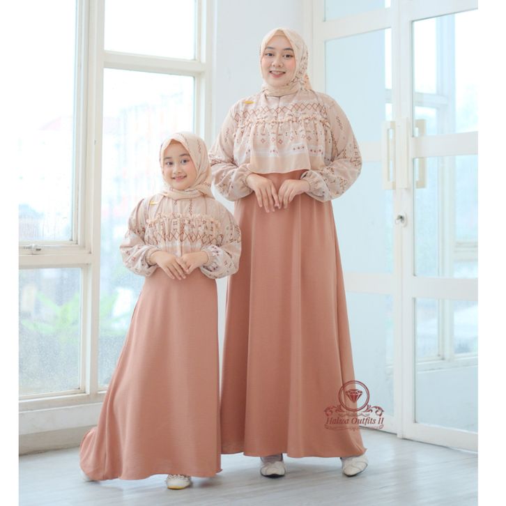 Gamis Couple Ibu Anak Cringkle Airflow Mix Ceruty Free Hijab Segiempat Motif Ethnic Busui Friendly Premium Quality
