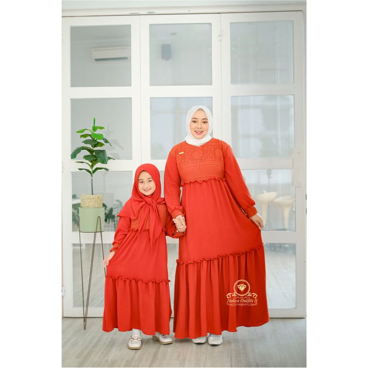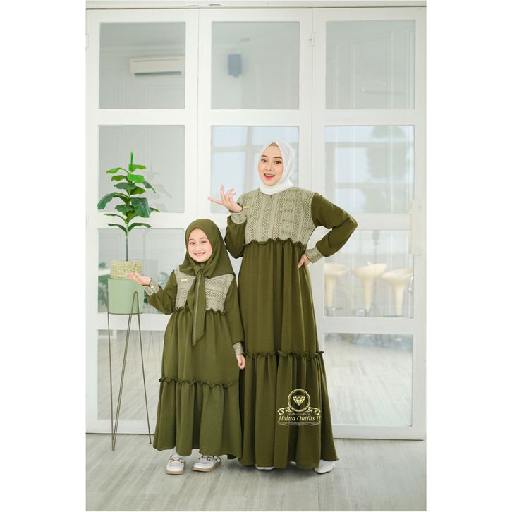 Gamis Couple Ibu Dan Anak Cringkel High Quality Mix Brukat Gamis Muslim Ibu Dan Anak Busui Friendly Premium Quality