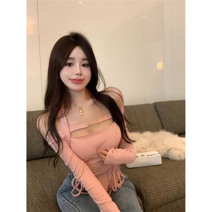 Cohan Ds011 Women's CropTop Slimbody Square Neck Long Sleeve Hitam Putih S/M/L