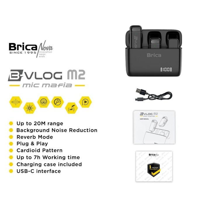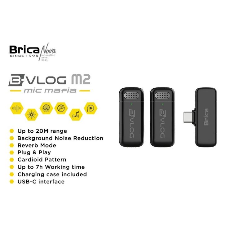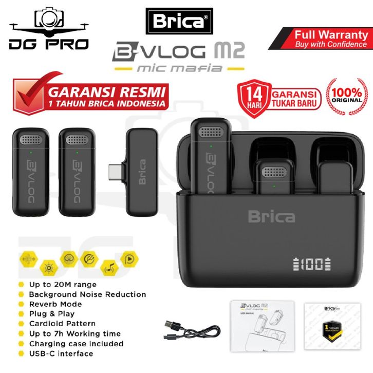 Brica B-Vlog M2 Mic Dual Wireless Microphone Bvlog M 2 Garansi Resmi