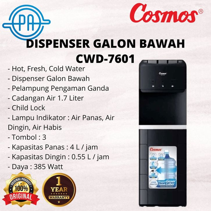 DISPENSER GALON BAWAH COSMOS CWD-7601 CWD7601 CWD 7601 HOT FRESH COLD