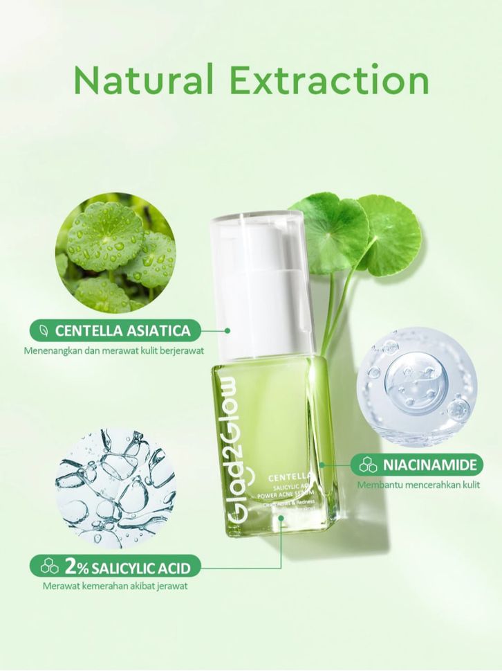 Glad 2 Glow Official Store | Glad2glow Centella Salicylic Acid Acne Serum 17ml | G2glow Obat Jerawat Clears Acnes