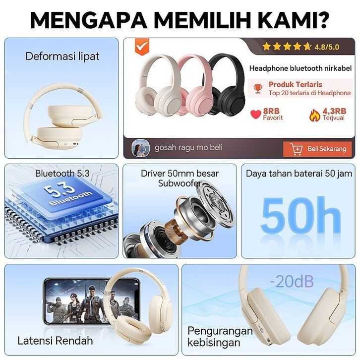 M6 Headphone Bluetooth 5.3 Dual M0De HIFI Bass Stereo Noise Reduction Headset Wireless Earphone Gaming Headset with Mic