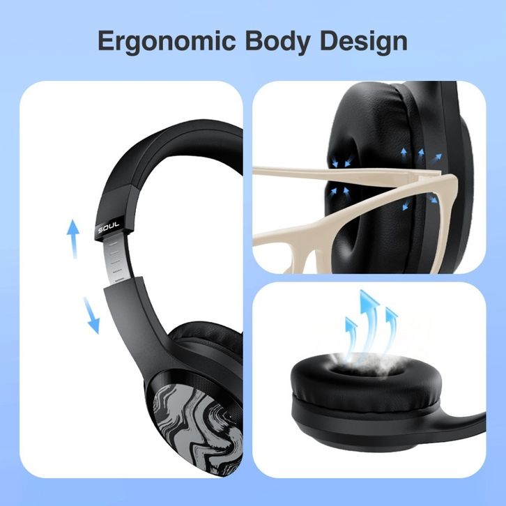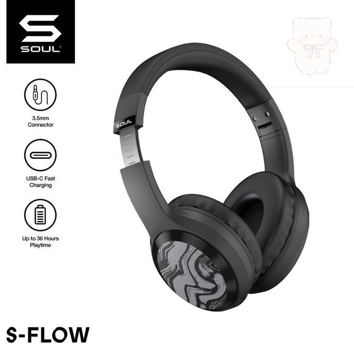 SOUL S-Flow Over-Ear Stereo Headphones Bluetooth 5.0, Cocok untuk Olahraga, Perjalanan, dan Kegiata