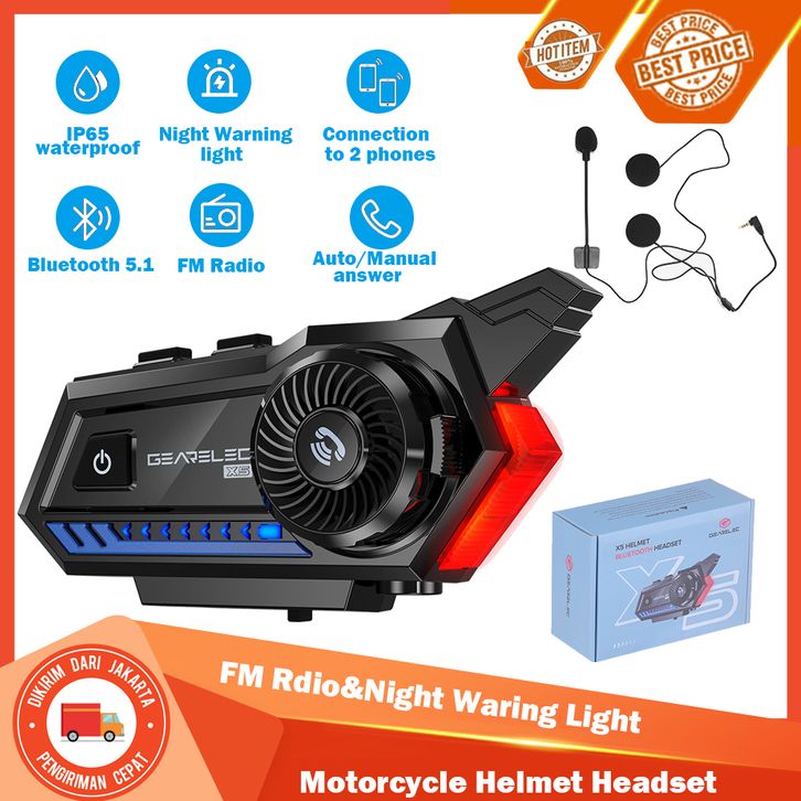 GEARELEC X5 Bluetooth 5.1 Headset Helm Sepeda Motor Earphone Nirkabel Tahan Air dengan FM radio 2000mAh
