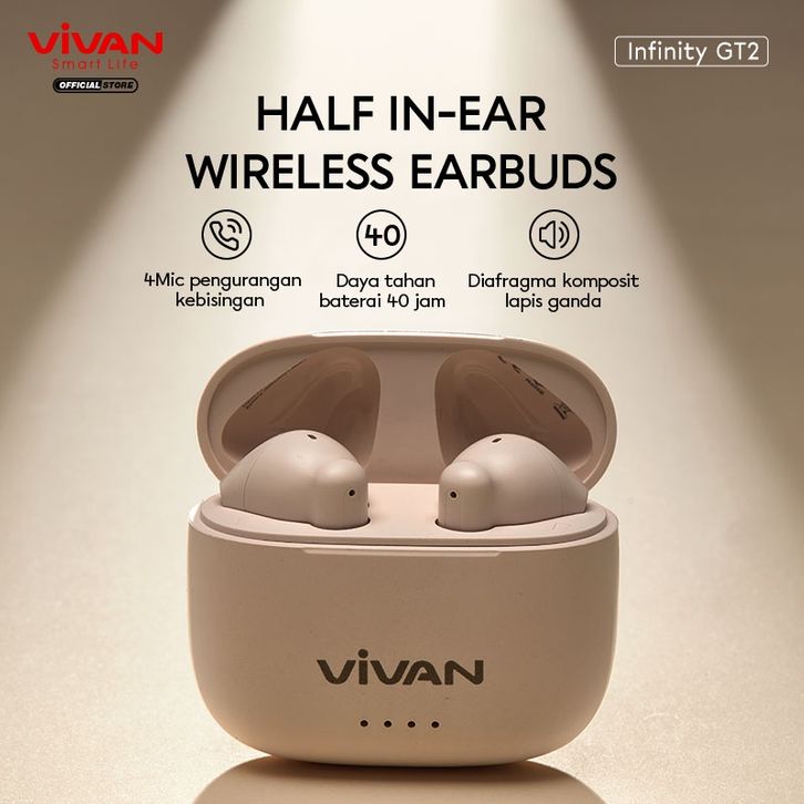 VIVAN TWS Infinity GT2 Wireless Earphone Airbuds Original BT 5.3 Playtime 40 Jam Headset Bluetooth Earbuds Semi In Ear