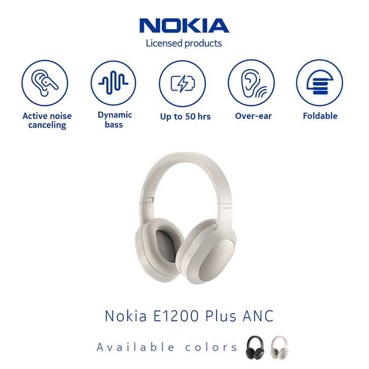 Nokia E1200 ANC Wireless Headphone Bluetooth 5.0 with Mic - Beige