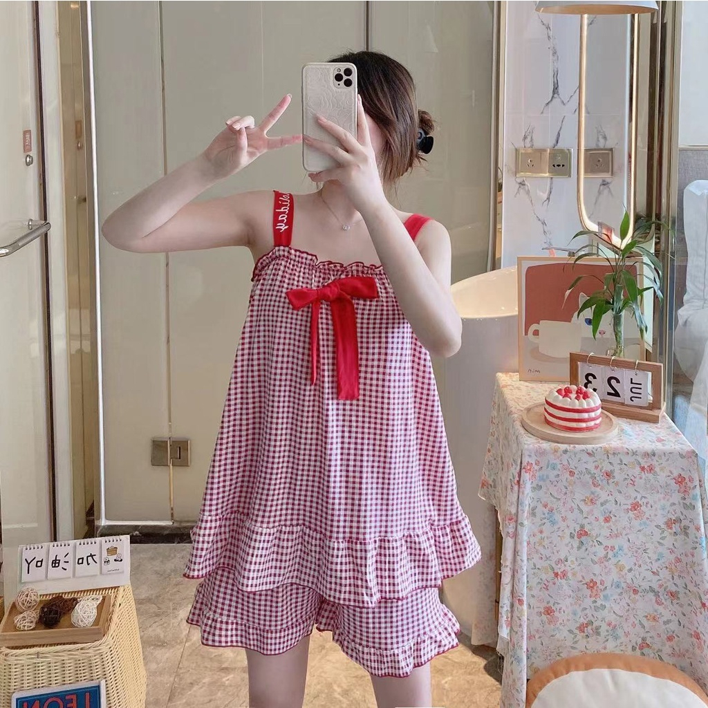 Yooyi Baju Tidur Wanita Piyama Baby Doll Setelan Perempuan Dewasa Tanpa Lengan Celana Pendek Remaja Desain Korea 011