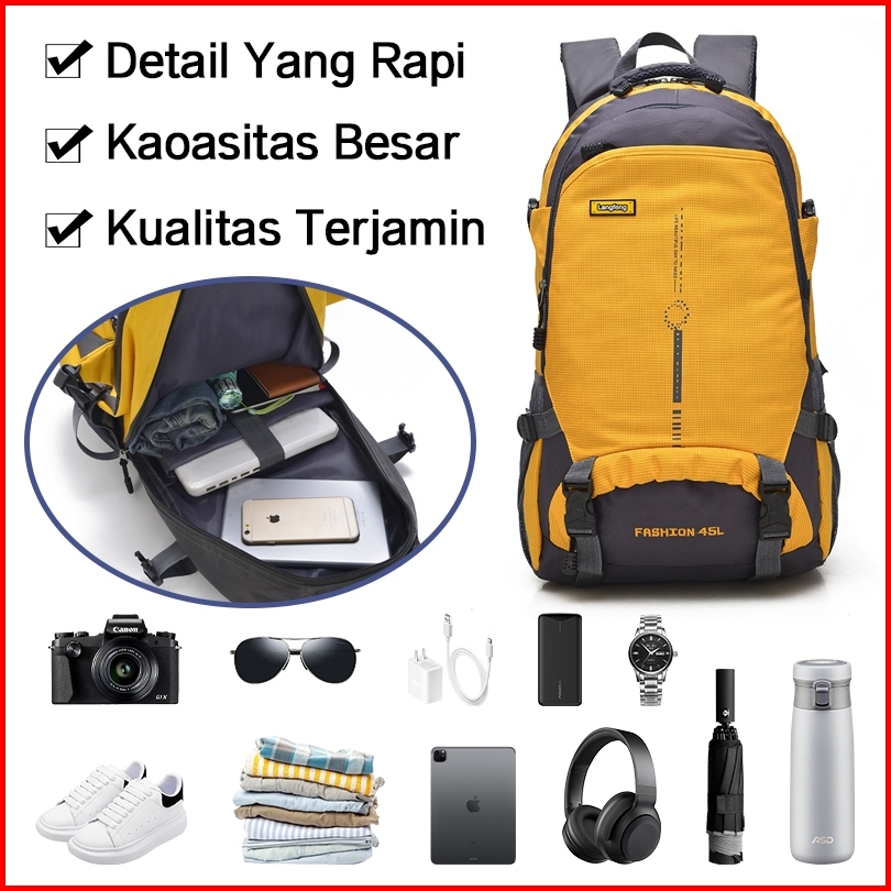 Techdoo 45l Tas Gunung Hiking Climbing Travelling Backpack Tas Ransel Laptop Waterproof Trg02