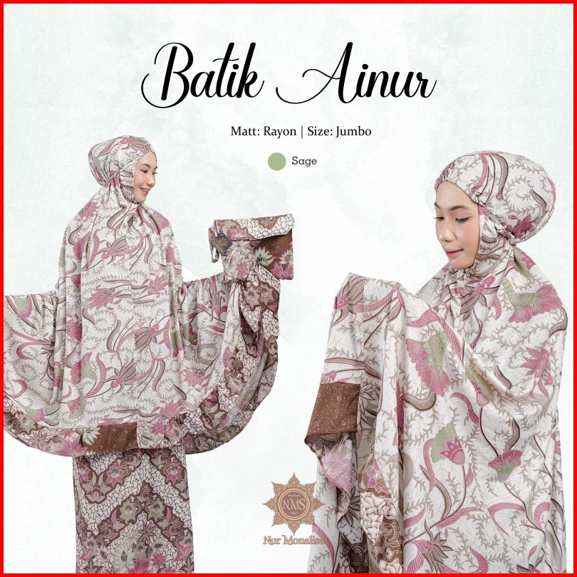 Mukena Dewasa Batik Ainur Terbaru 2023 Rayon Bali Adem Jumbo
