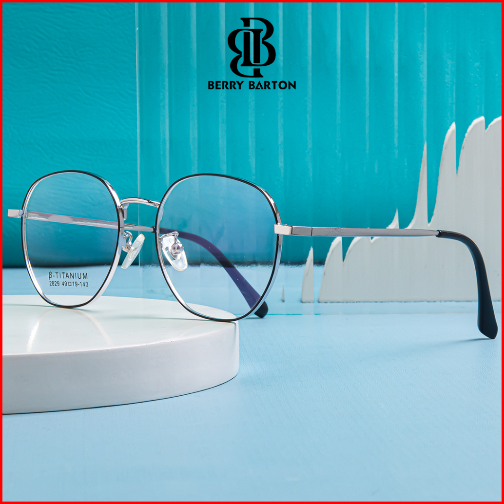 Berrybarton Kacamata Bulat Anti Radiasi Photocromic Blueray Kacamata Minus Titanium Pria Wanita 2829