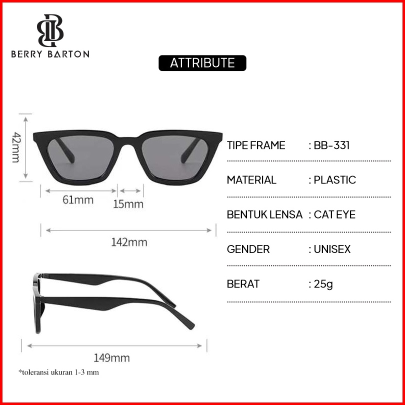 Berrybarton - Kacamata Hitam Fashion Cat Eye Plastik Sunglasses Anti Uv Wanita 331