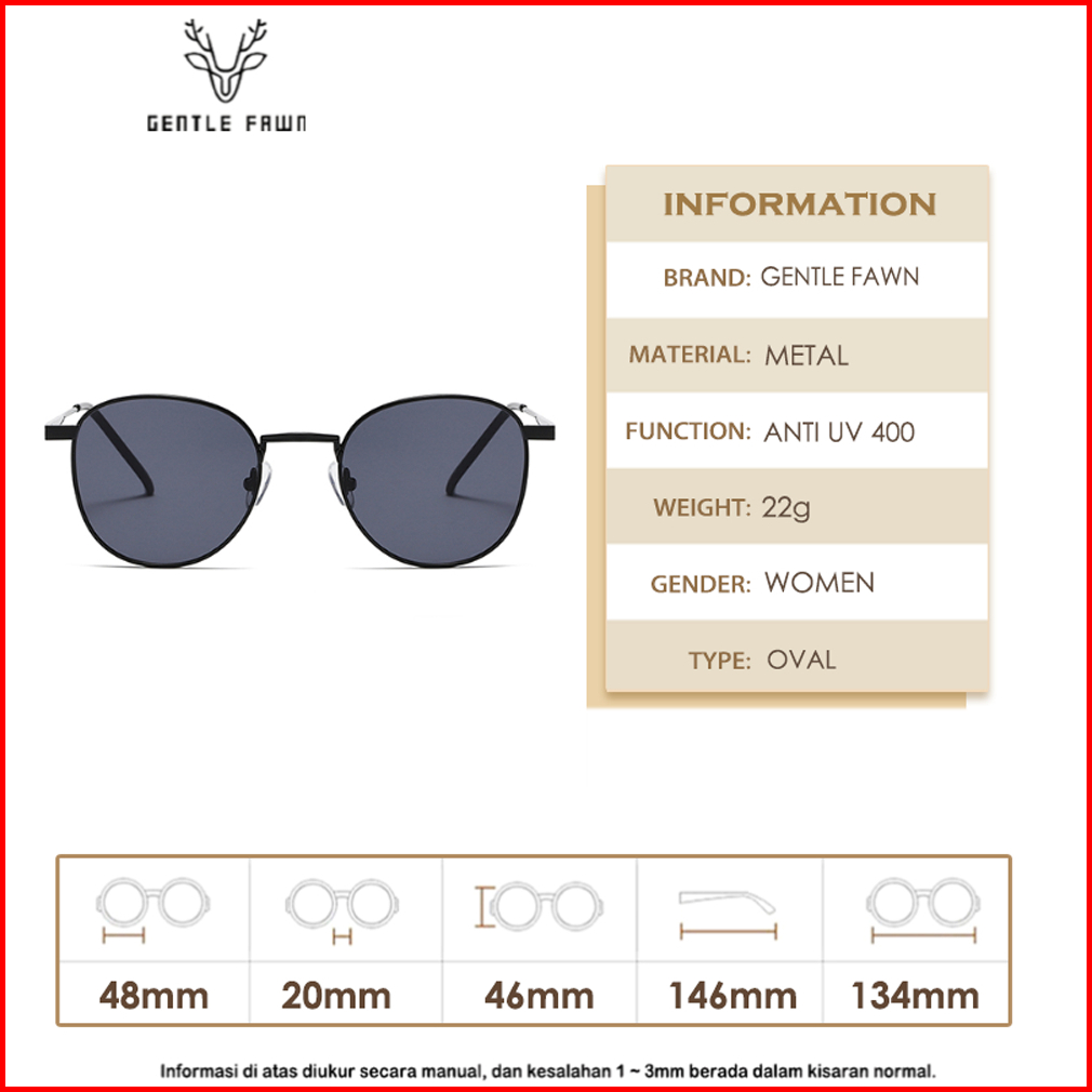 Gentle Fawn Kacamata Sunglasses Anti Uv 400 Silau Matahari Style Bulat Retro Keren Pria Wanita 2205