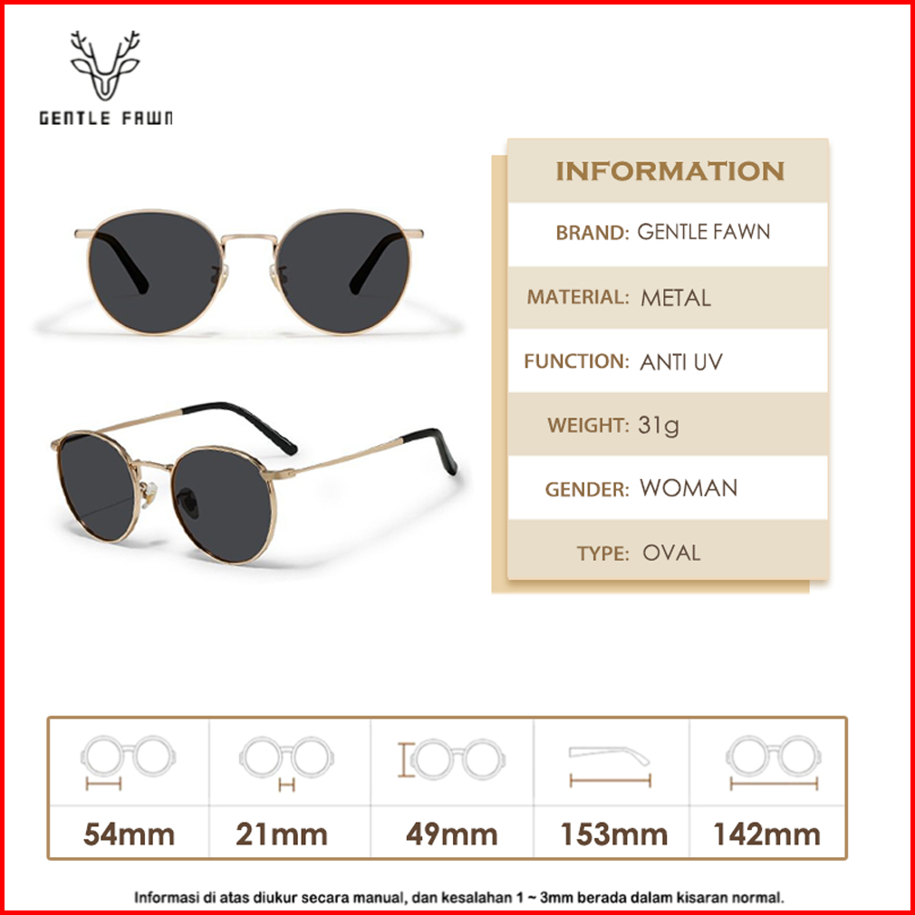 Gentle Fawn Kacamata Sunglasses Anti Uv 400 Silau Matahari Style Retro Vintage Fashion Wanita Kekinian Bahan Metal Keren