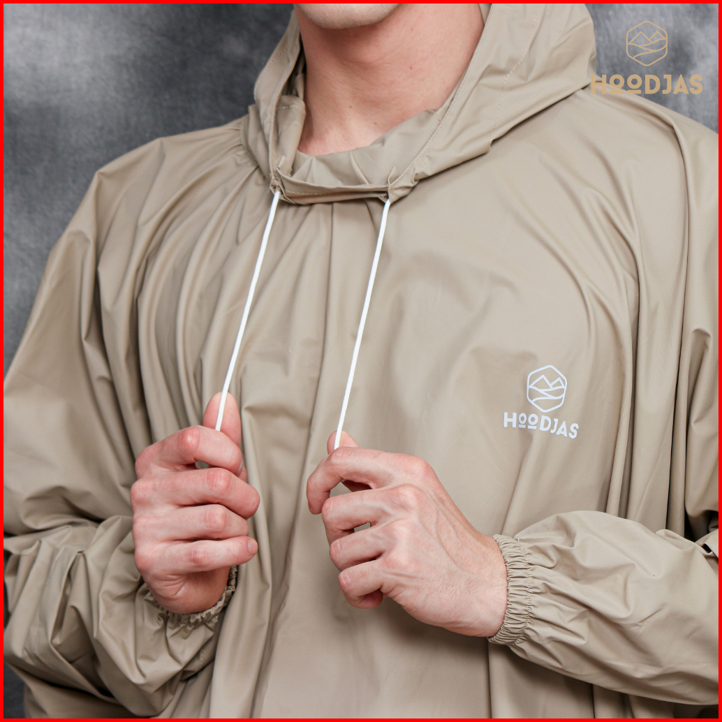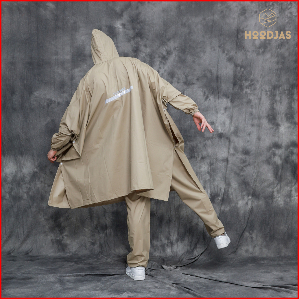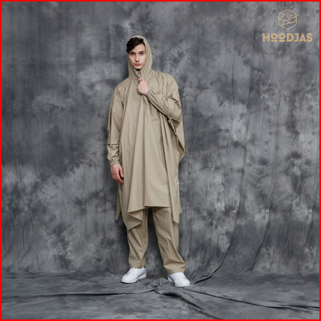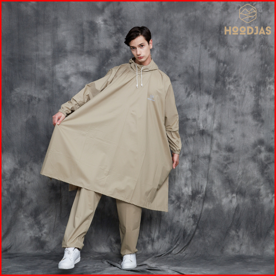 Hoodjas Jas Hujan Motor Pria Wanita Model Ponco Lengan Kelelawar Bahan Pvc Waterproof Warna Cream