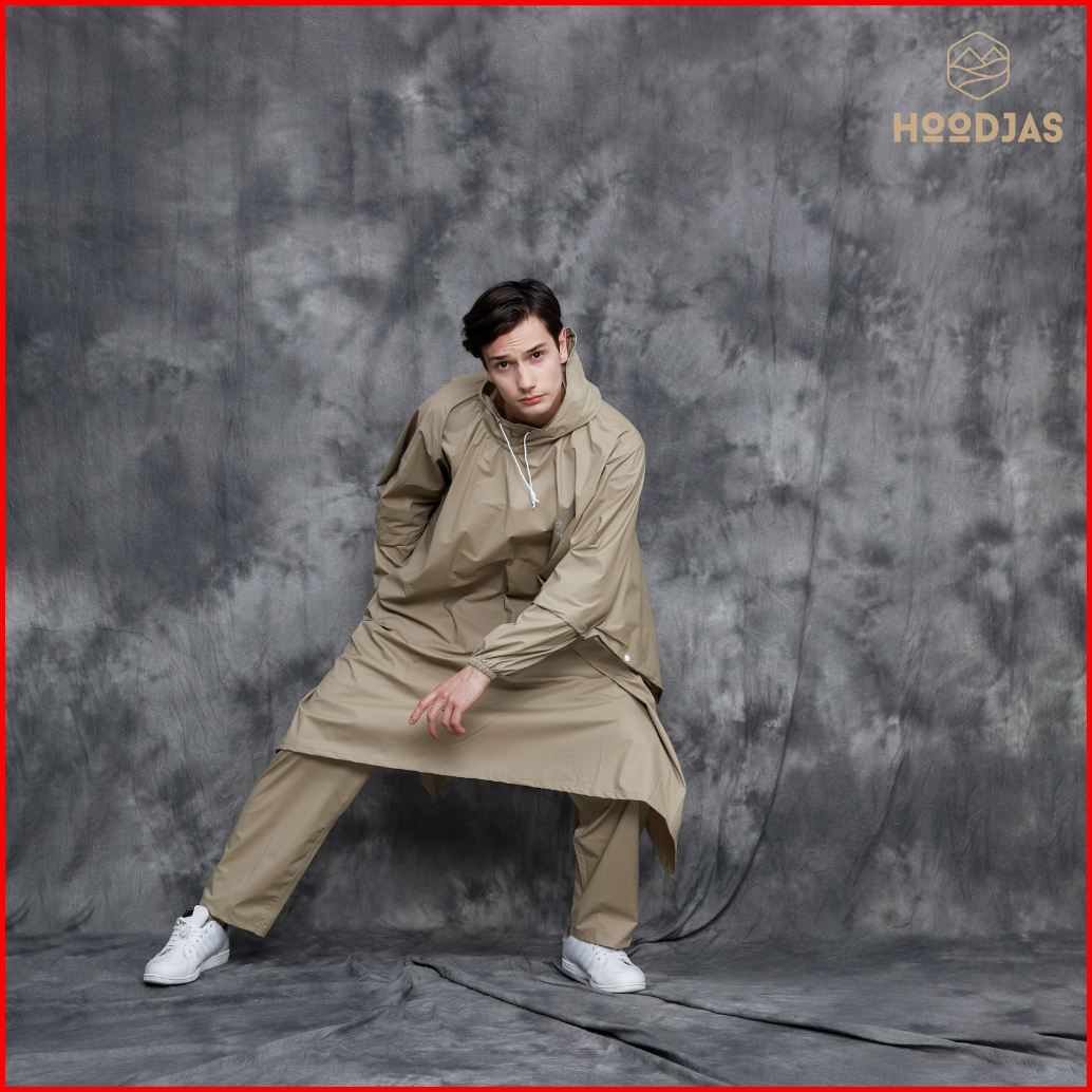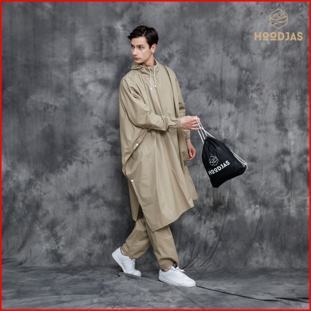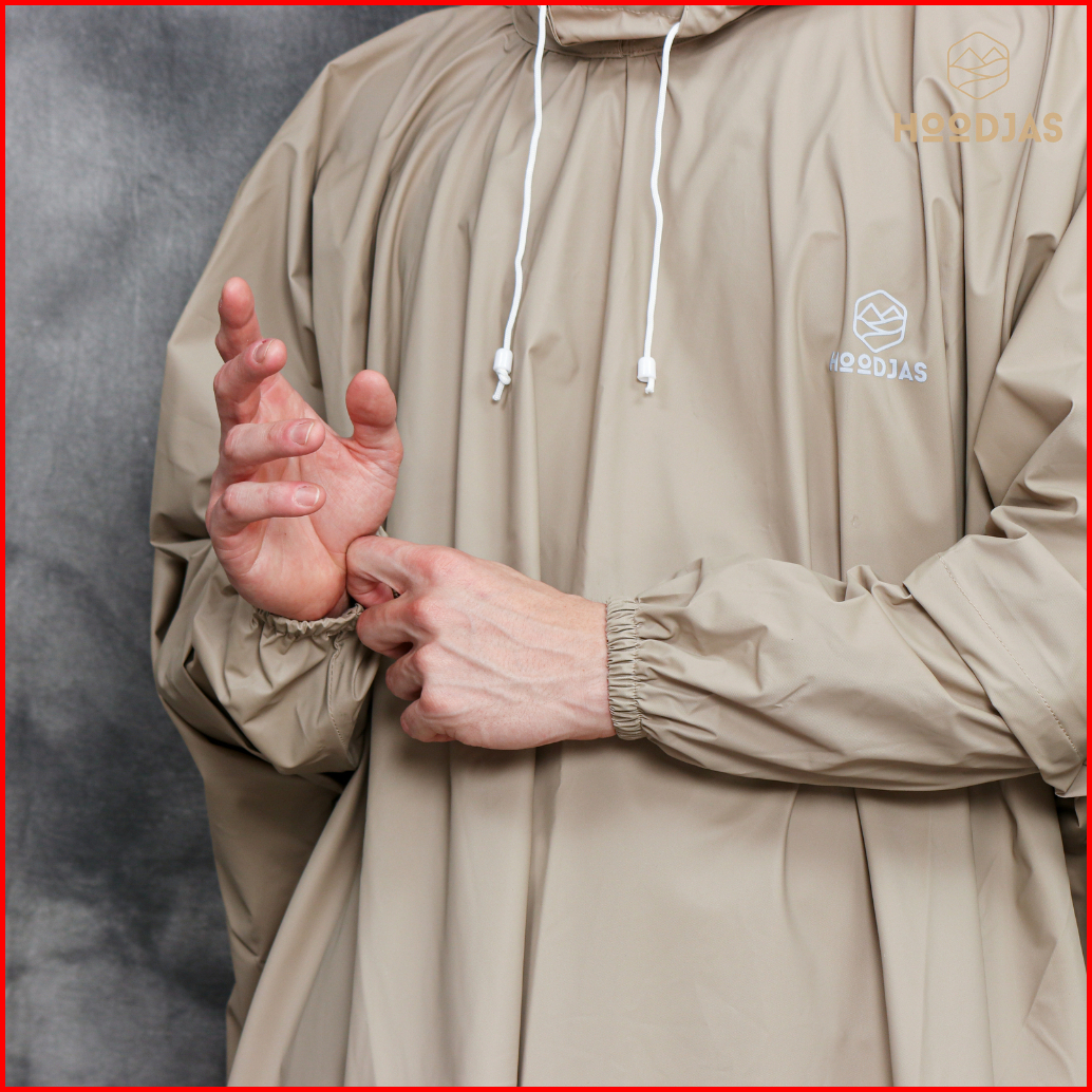 Hoodjas Jas Hujan Motor Pria Wanita Model Ponco Lengan Kelelawar Bahan Pvc Waterproof Warna Cream