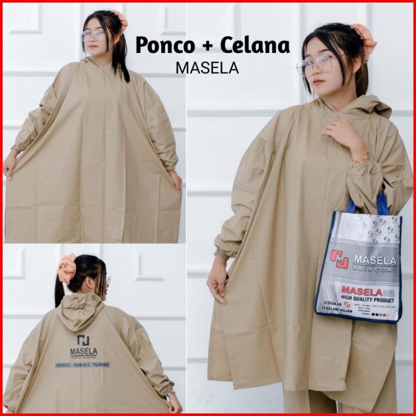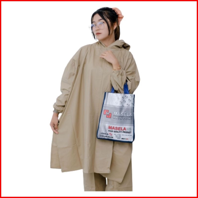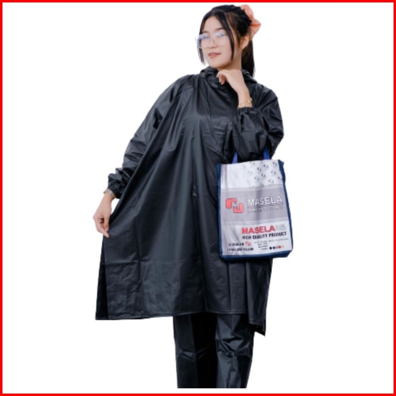 Jas Hujan Ponco Lengan Dan Celana Masela Dewasa Kelelawar Anti Rembes Bahan Karet Pvc Tebal 0 25