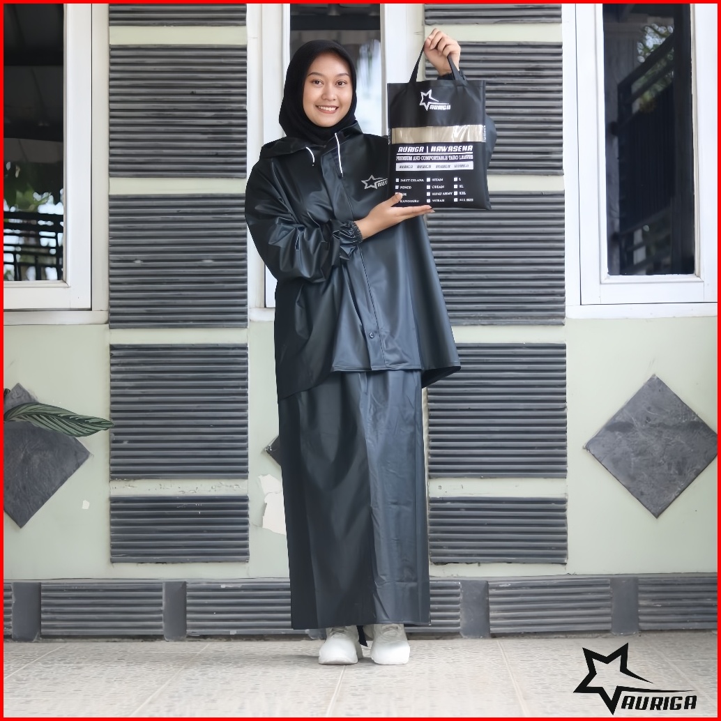 Jas Hujan Wanita Setelan Baju Dan Rok Dewasa Bahan Pvc Karet Tebal Elastis Anti Rembes