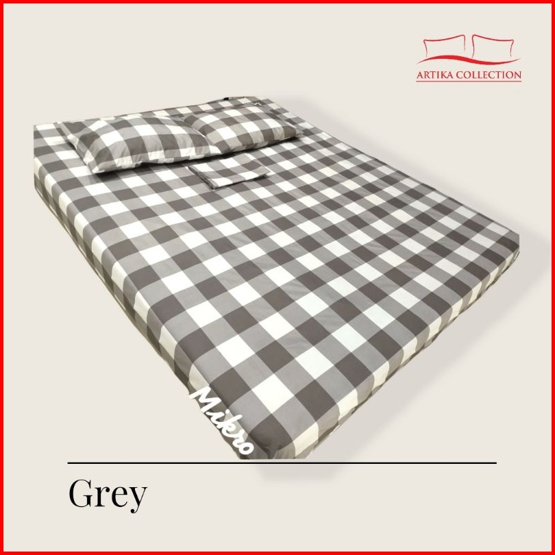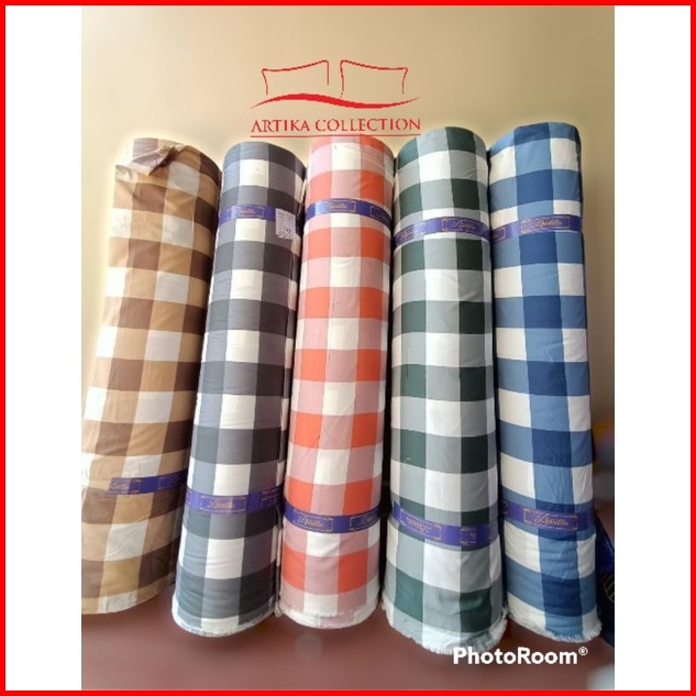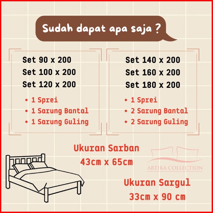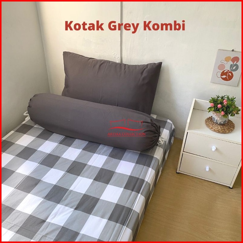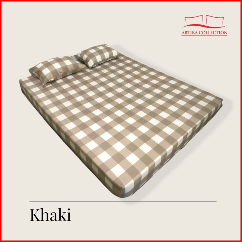 Sprei Estetik Motif Kotak Khaki Bahan Polymicro Sudah Include Sarung Bantal Guling