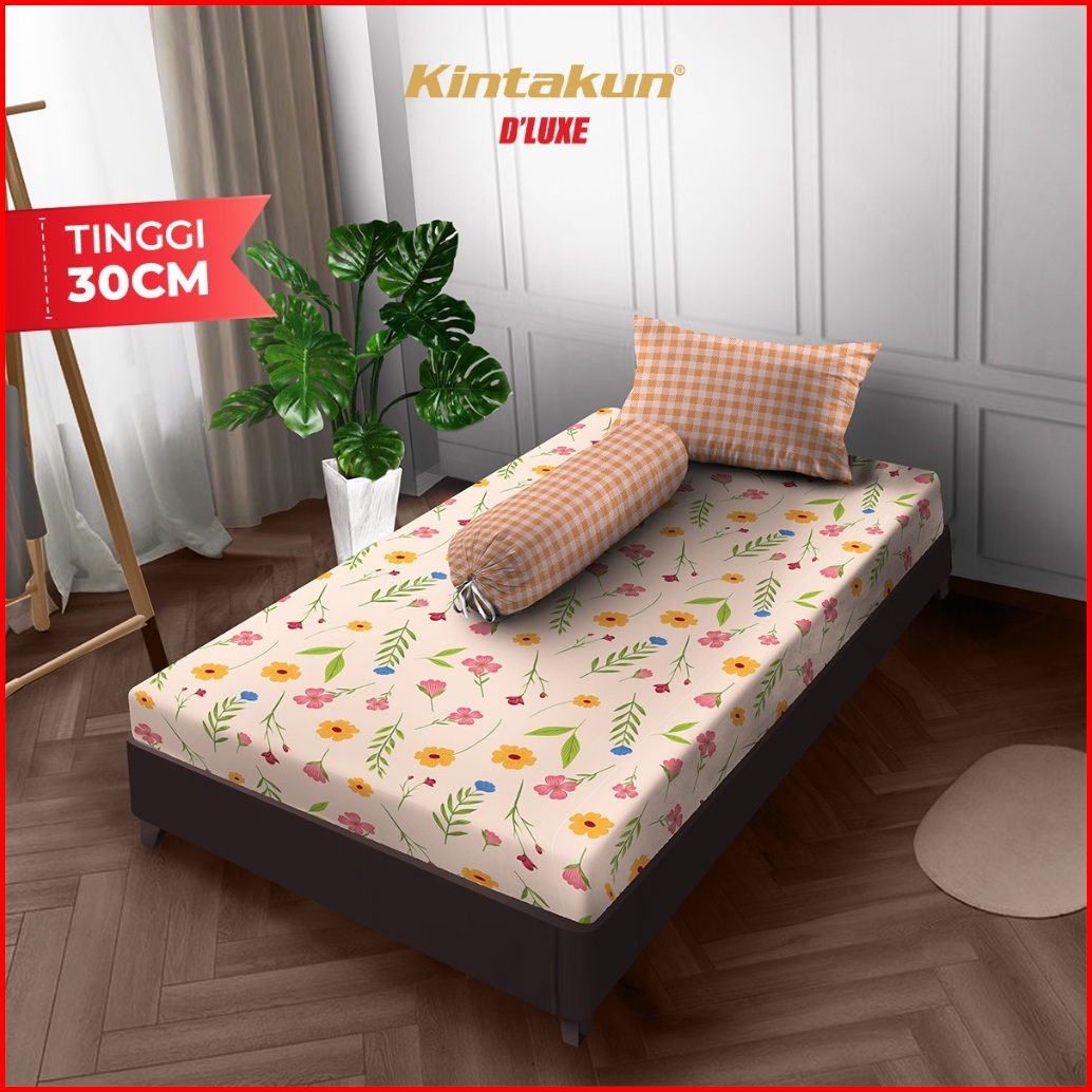 Kintakun Sprei Fitted Dasom 90 100 120 Single Minimalis Bunga Aesthetic Dluxe Krem Tinggi 30 Cm