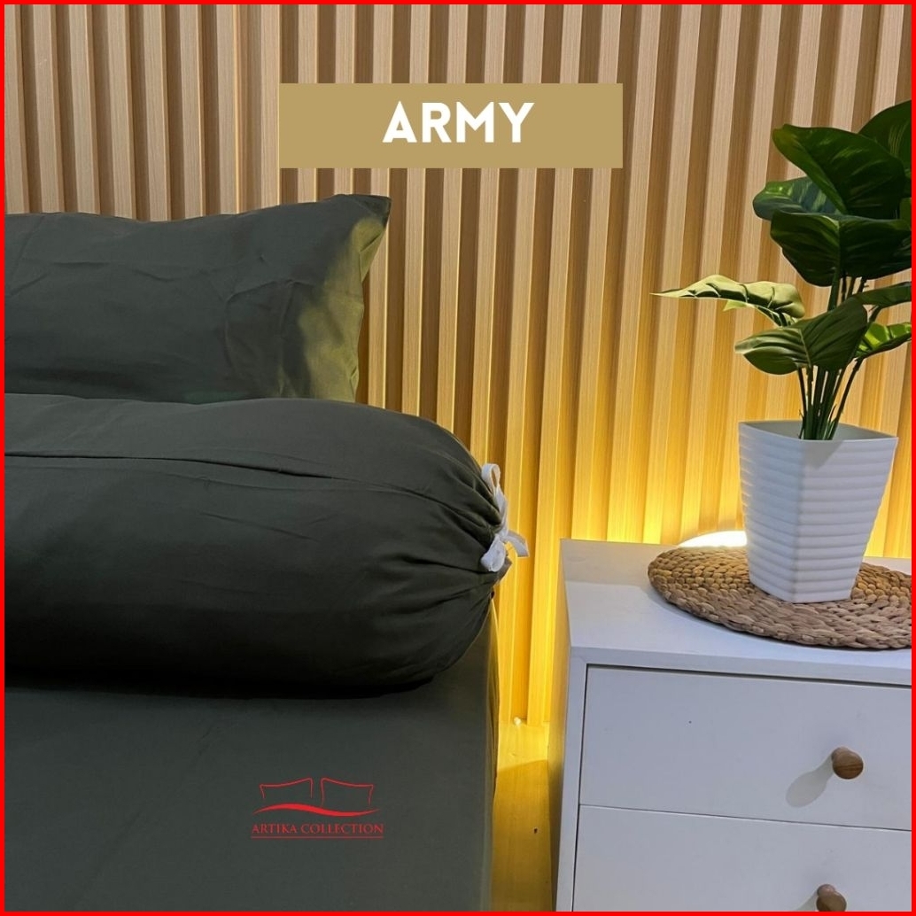 Sprei Estetik Warna Green Hijau Army Tanpa Embos Include Sarung Bantal Guling Ukuran 90x200 100x200 120x200 160x200 180x