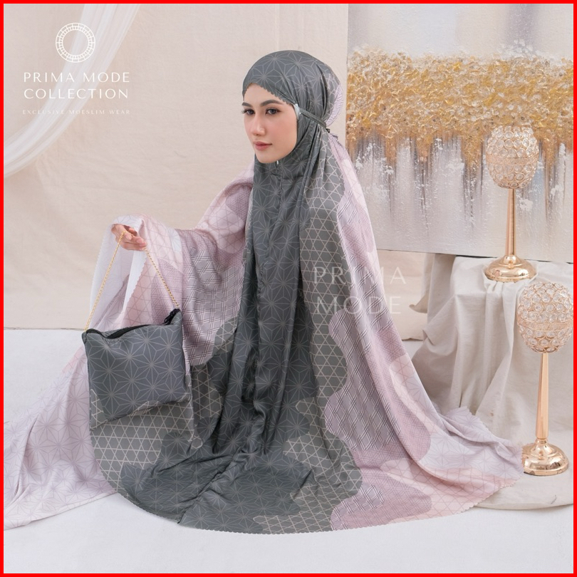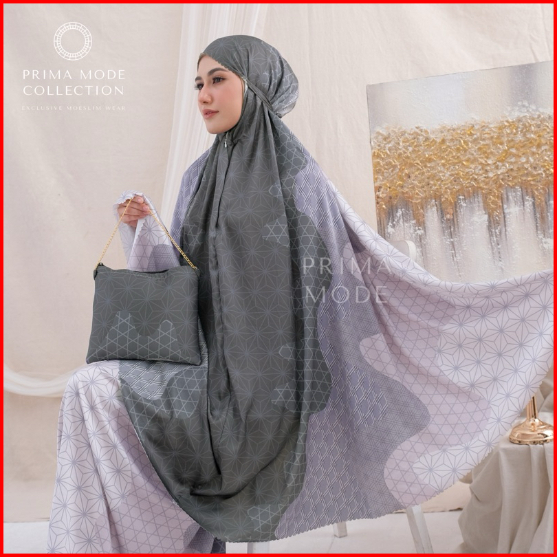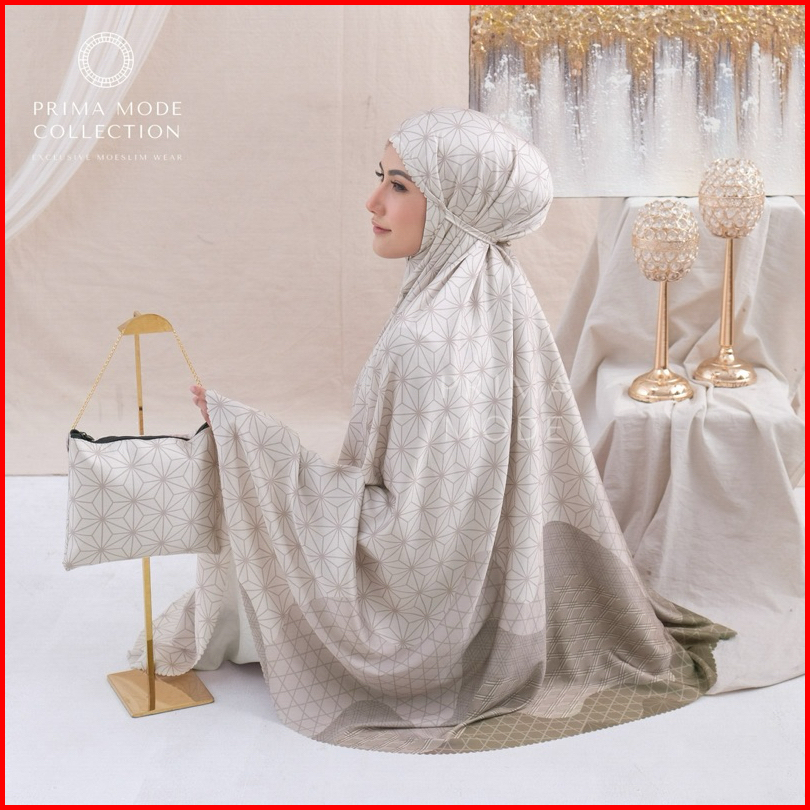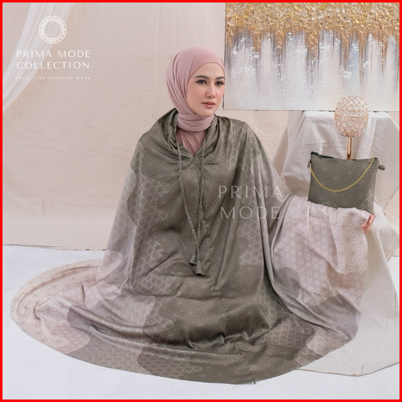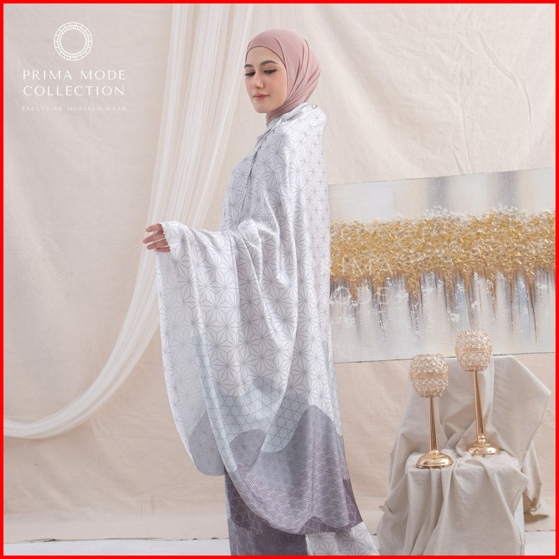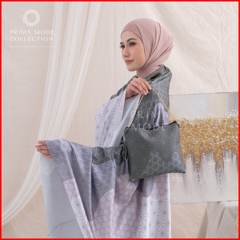 Prima Mode - Mukena Abstrak Dewasa Silk Elenoir Luxury 2in1 Amelie Series Armani Vanelsilk Mewah Lasercut Mukena 2in1 Ta