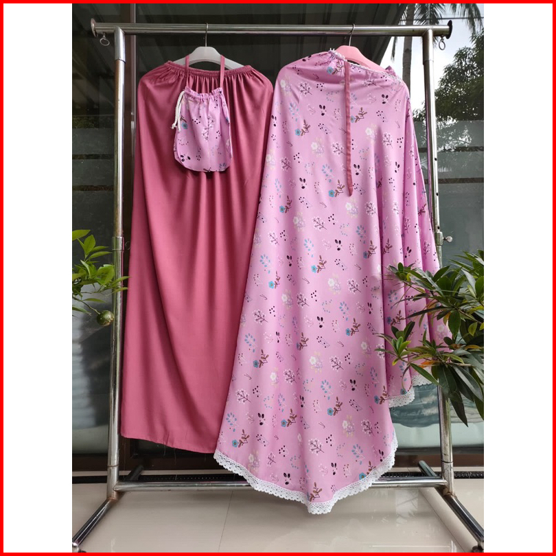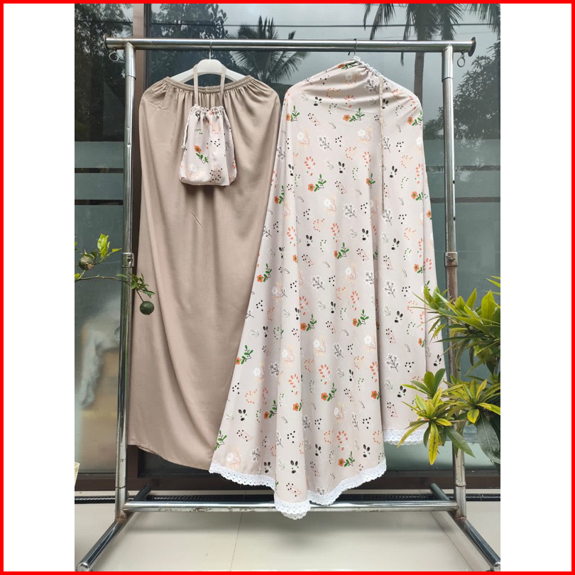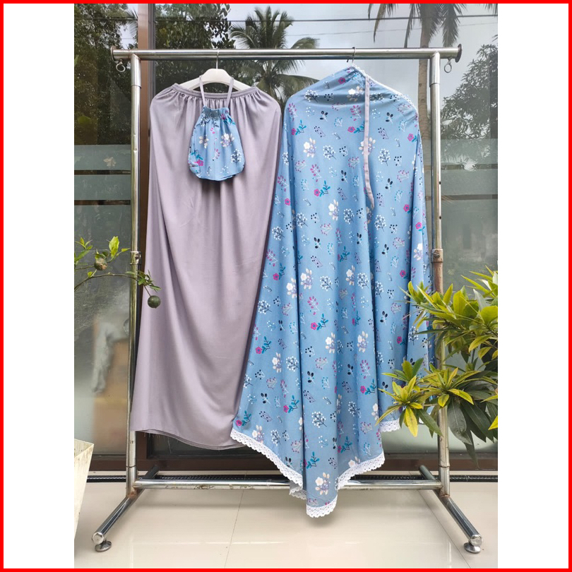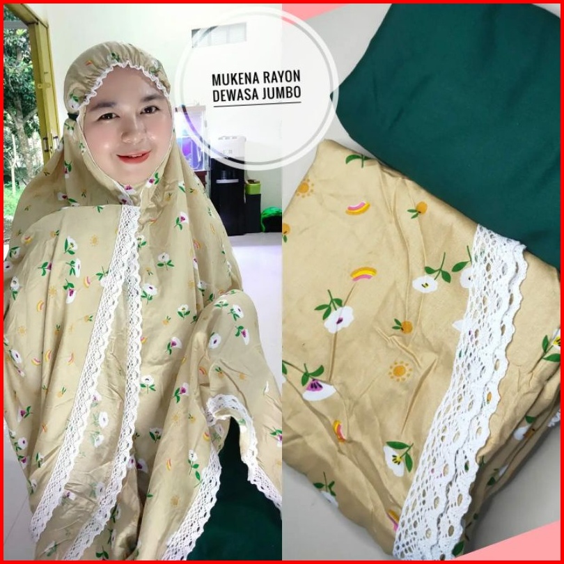 Mukena Rayon Dewasa Jumbo Motif Lily Free Tas Dailywear Travel Friendly