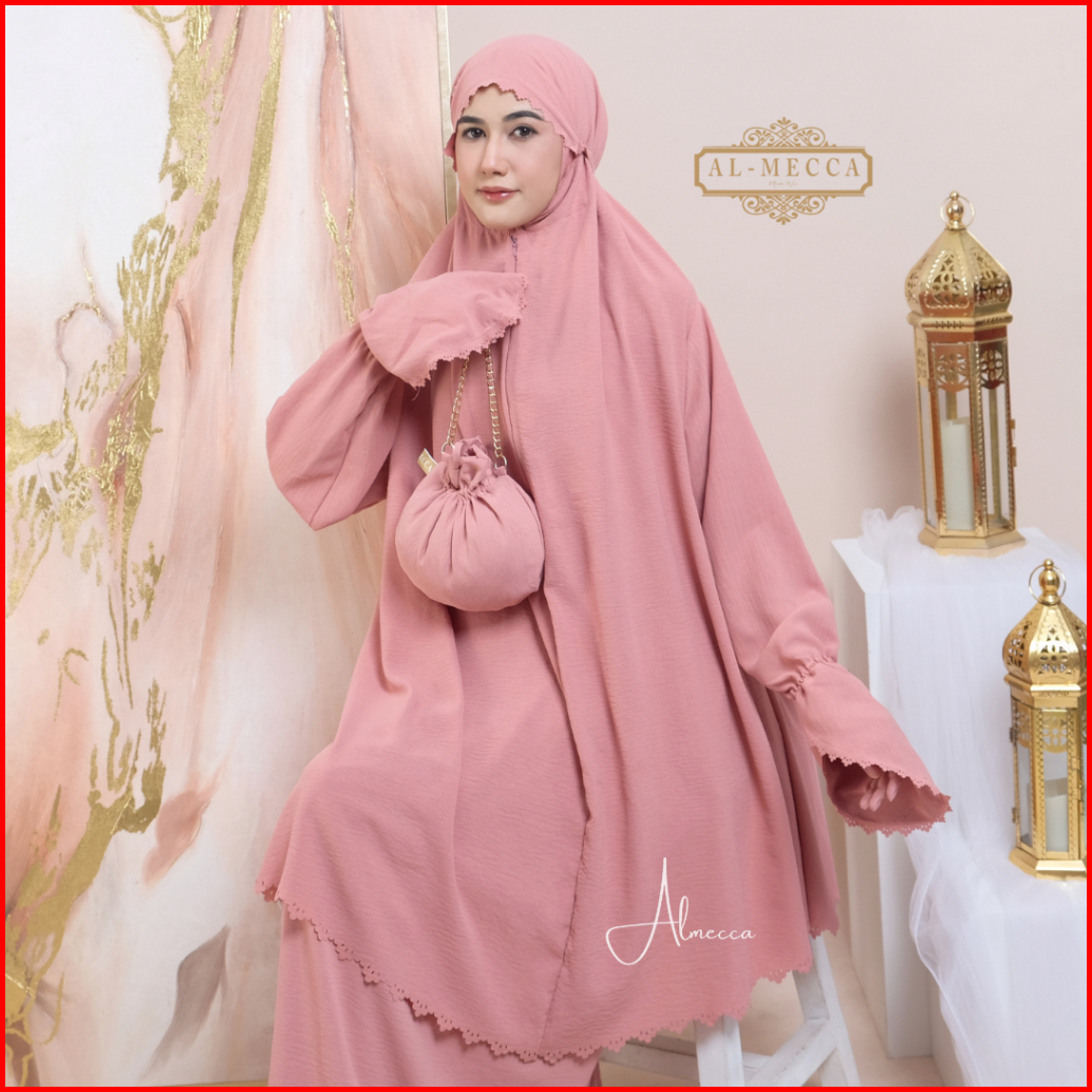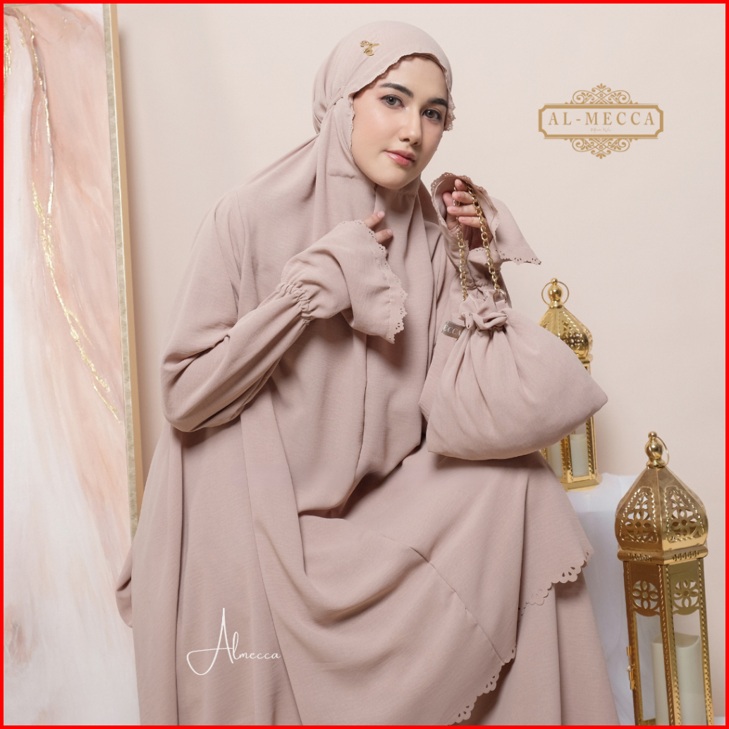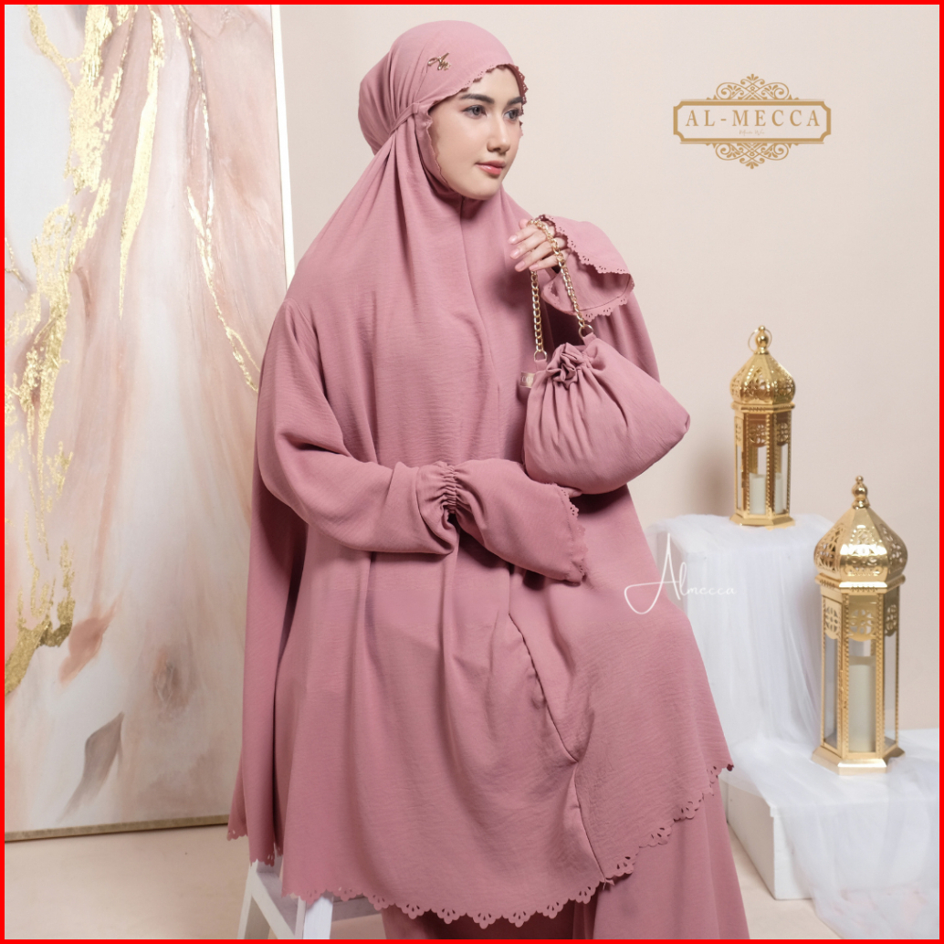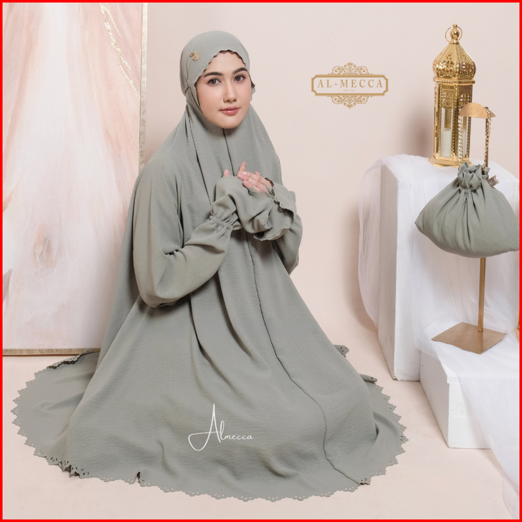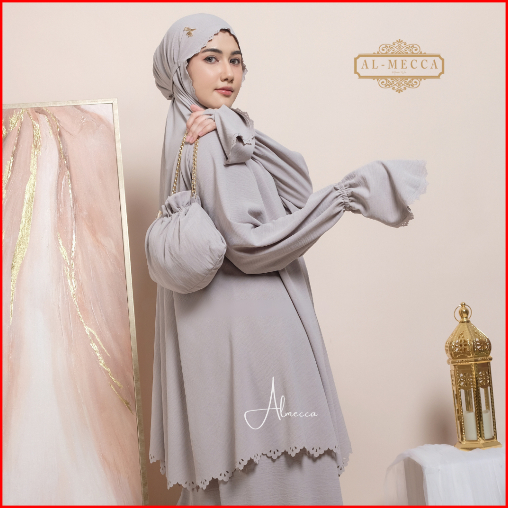 Almecca - Mukena Dewasa Stelan Berlengan 2in1 Crinkel Airflow Lasercut Cantik Aleena Series
