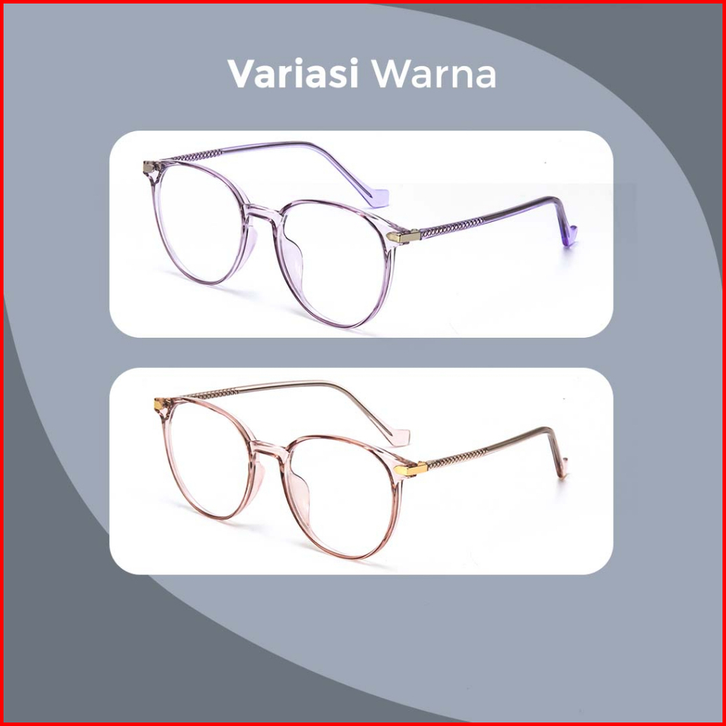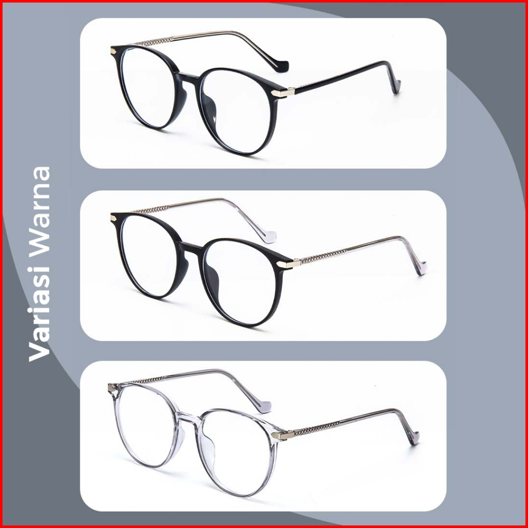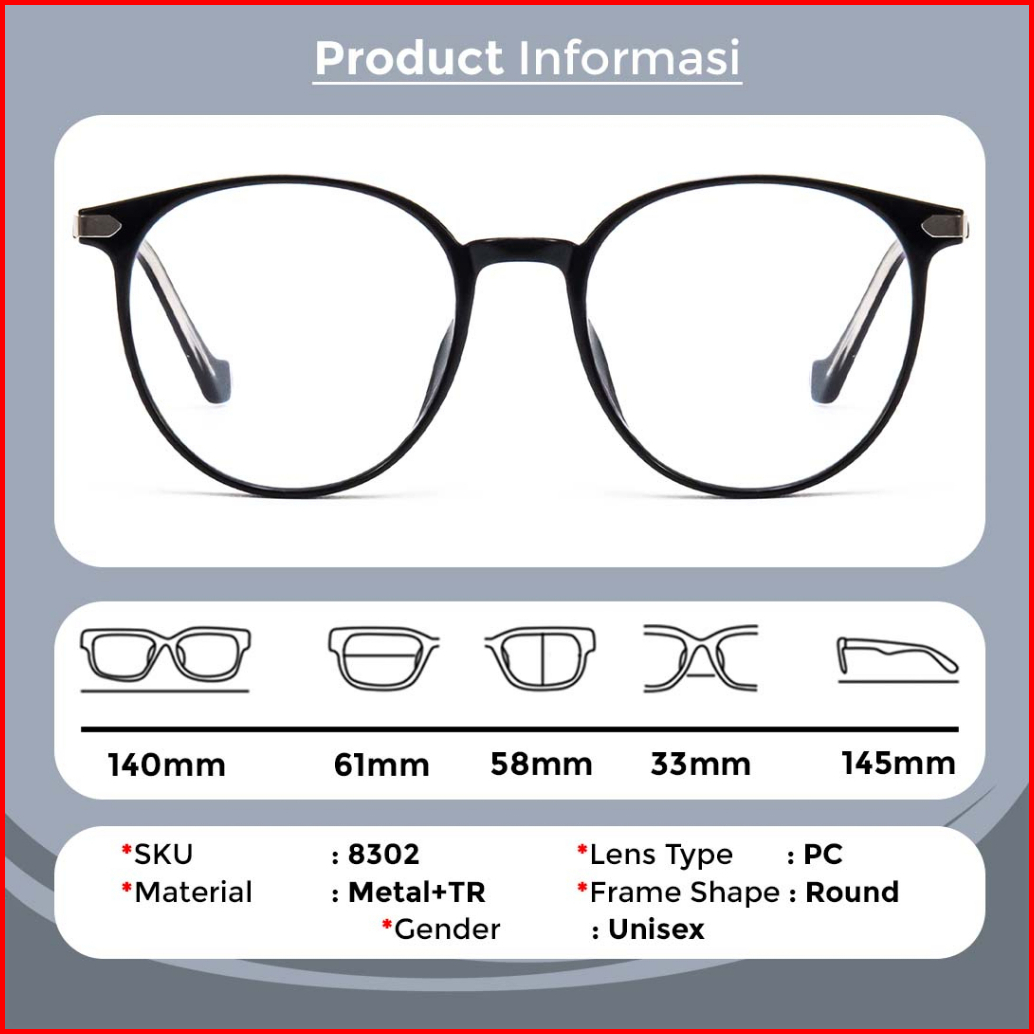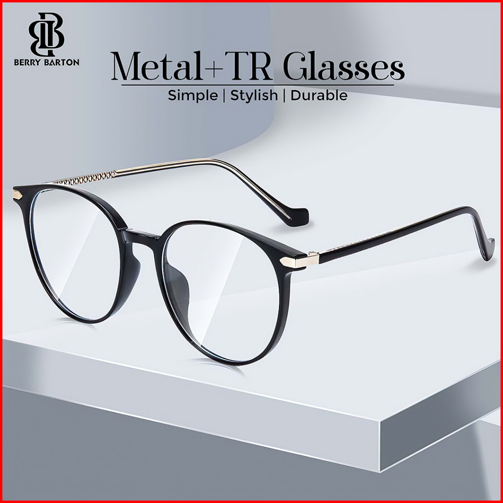 Berrybarton - Kacamata Bulat Metal Pc Lensa Anti Radiasi Bluercromic Pria Wanita 8302
