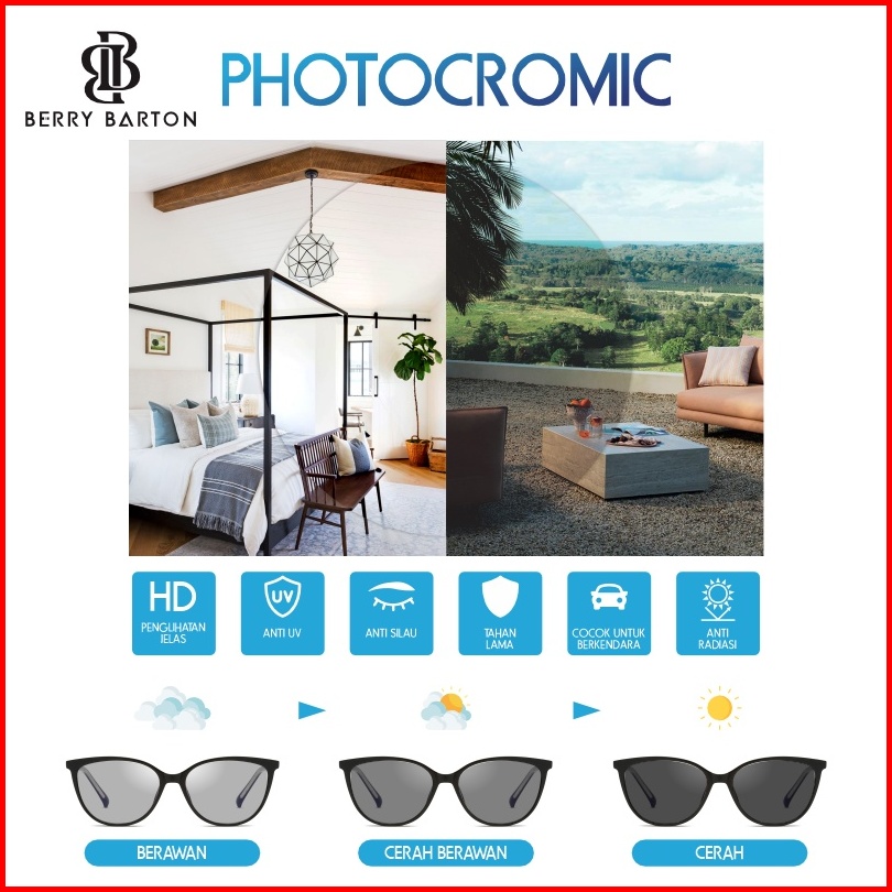 Berrybarton Kacamata Cat Eye Anti Radiasi Photocromic Blueray Kacamata Pegas Bisa Minus Wanita 214212