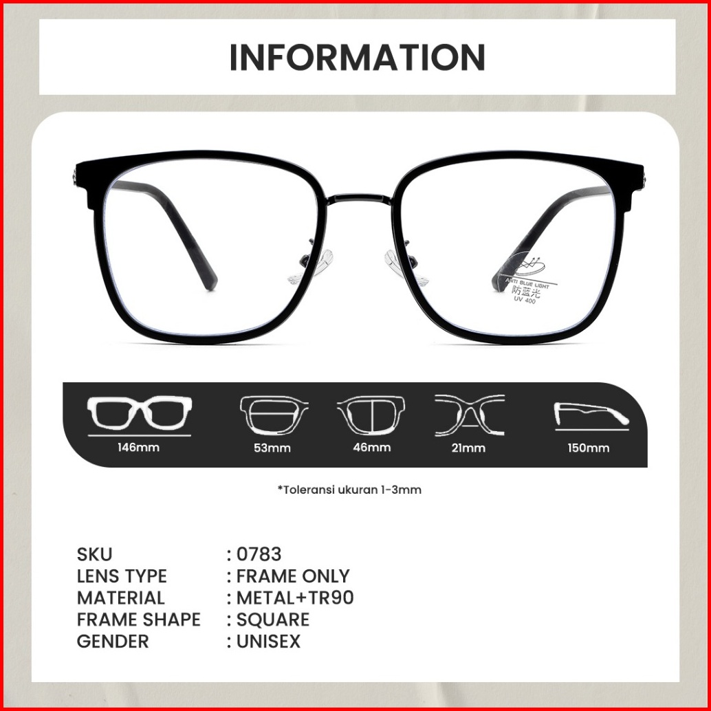 Berrybarton Kacamata Korea Kotak Metal Tr Anti Radiasi Blueray Photocromic Pria Wanita 0783