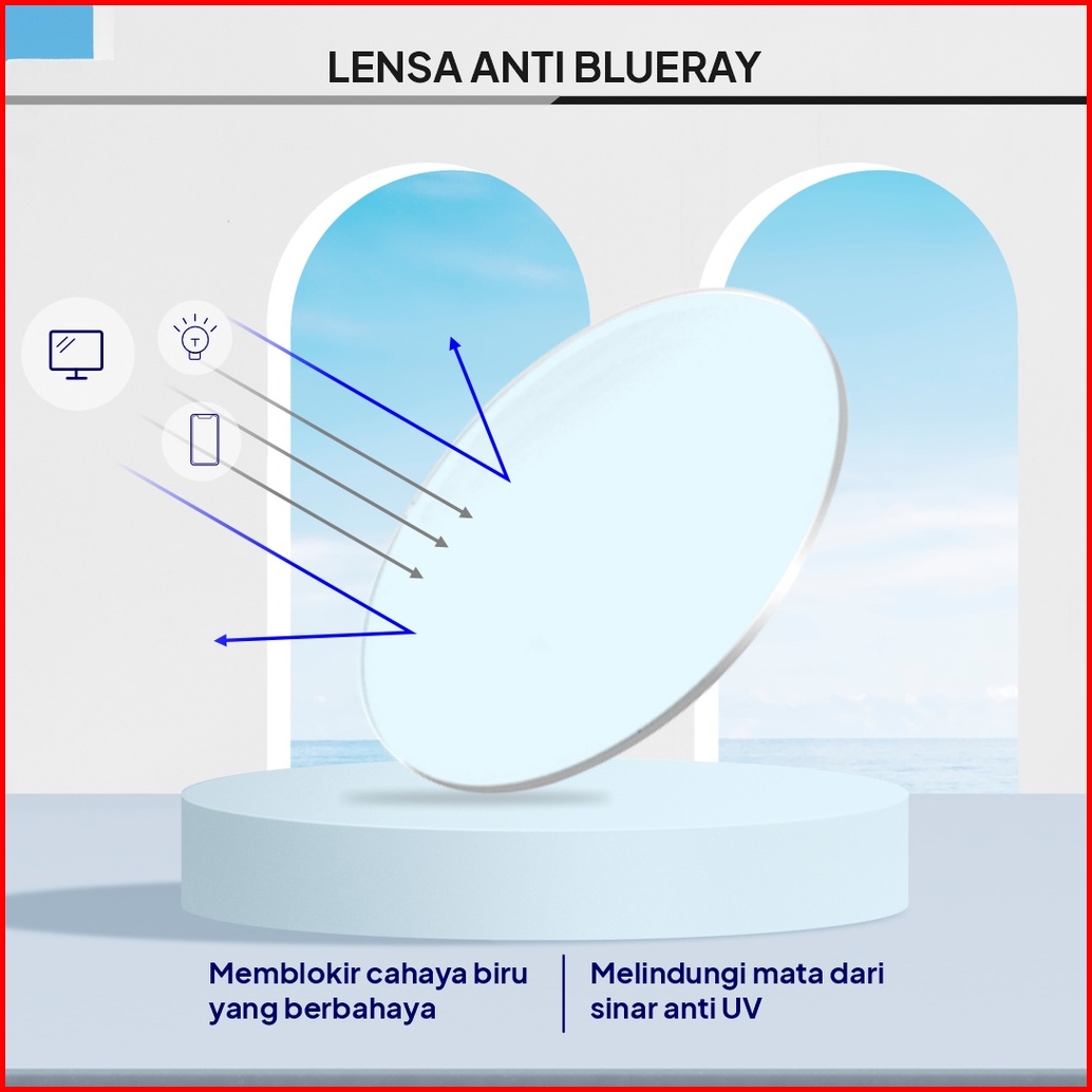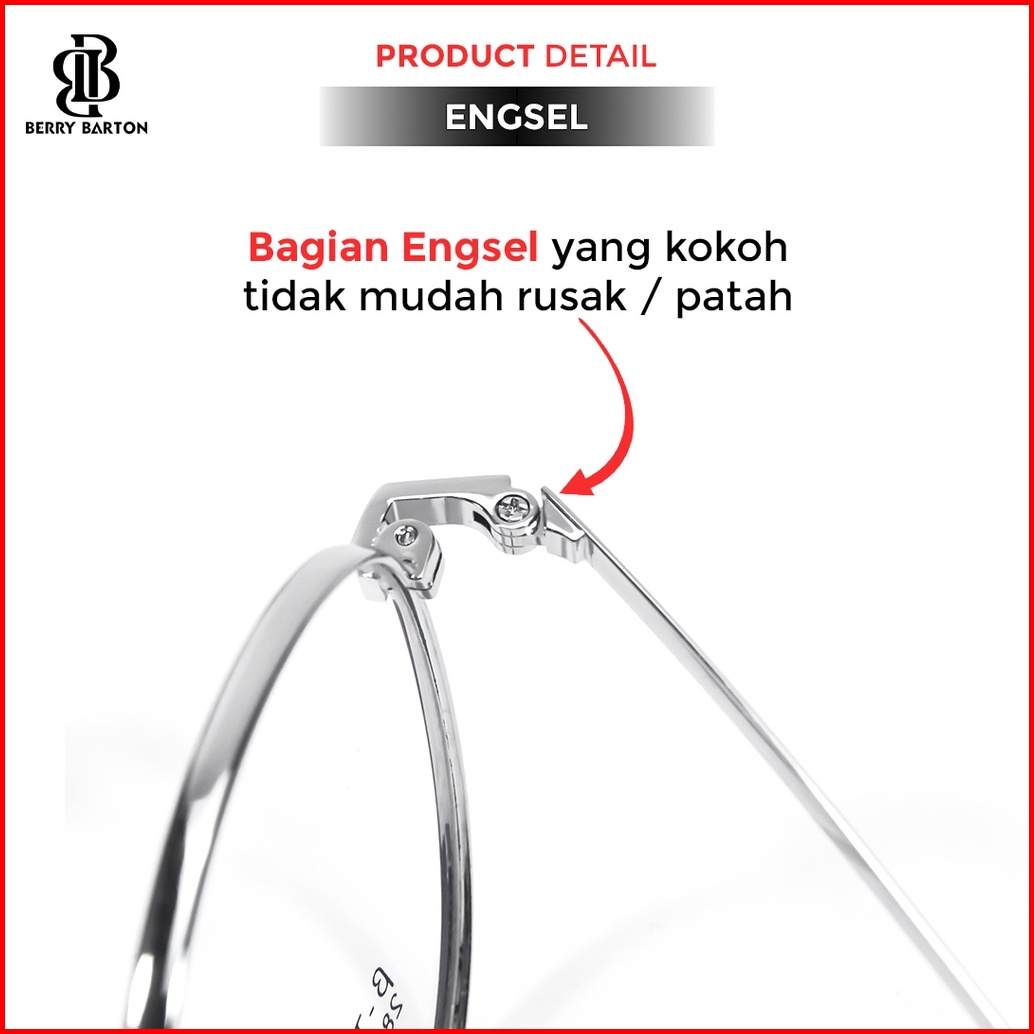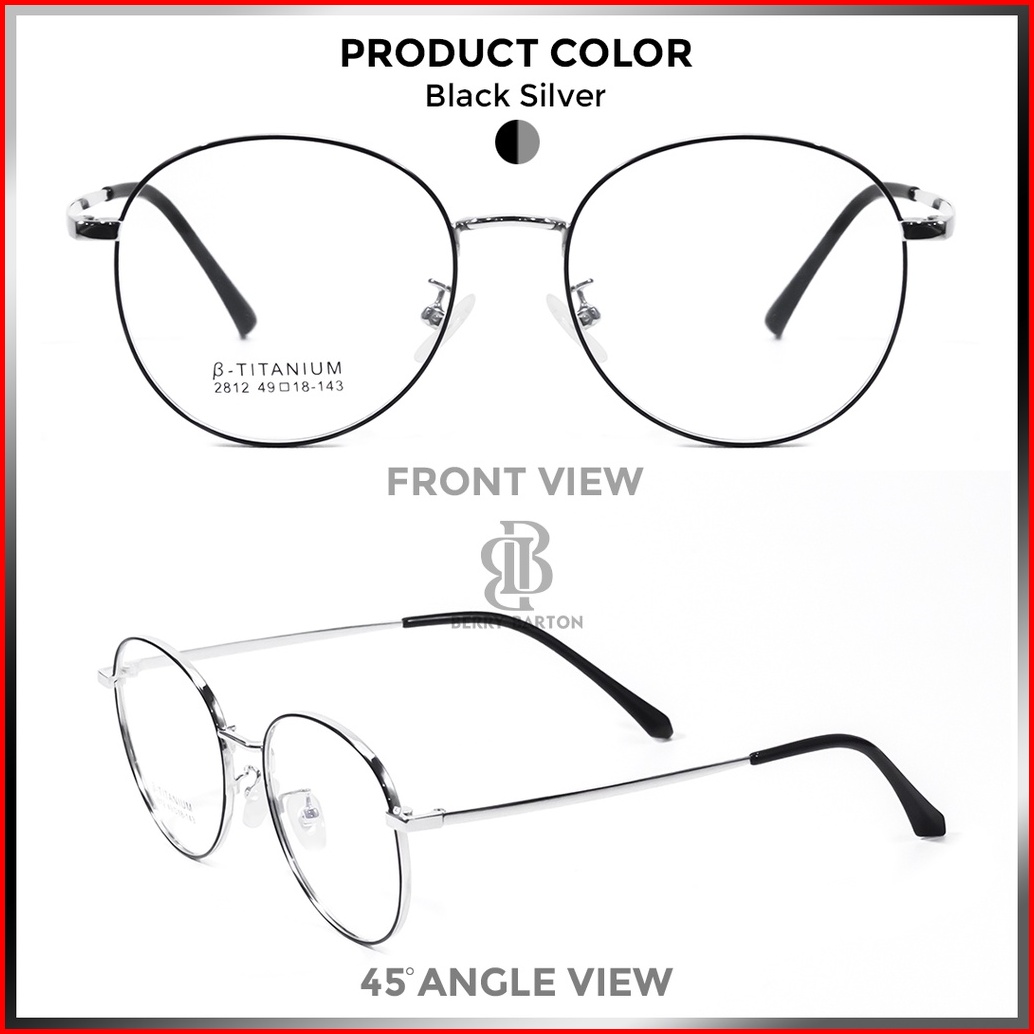 Berrybarton - Kacamata Bulat Modern Titanium Lensa Minus Anti Radiasi Bluecromic 2812