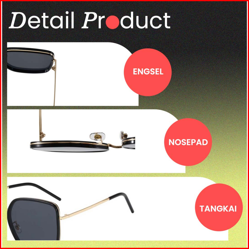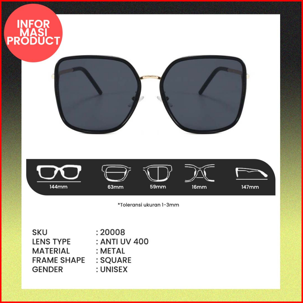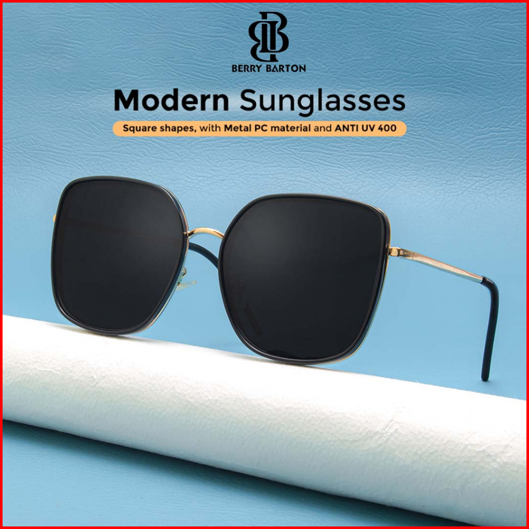 Berrybarton - Kacamata Hitam Square Metal Pc Outdoor Sunglasses Anti Uv Wanita 20008