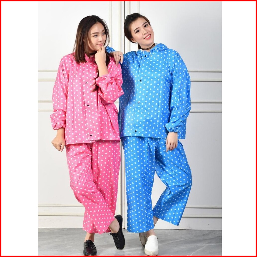 Jas Hujan Setelan Polkadot Wanita Cantik Jas Hujan Bintik