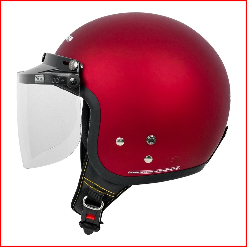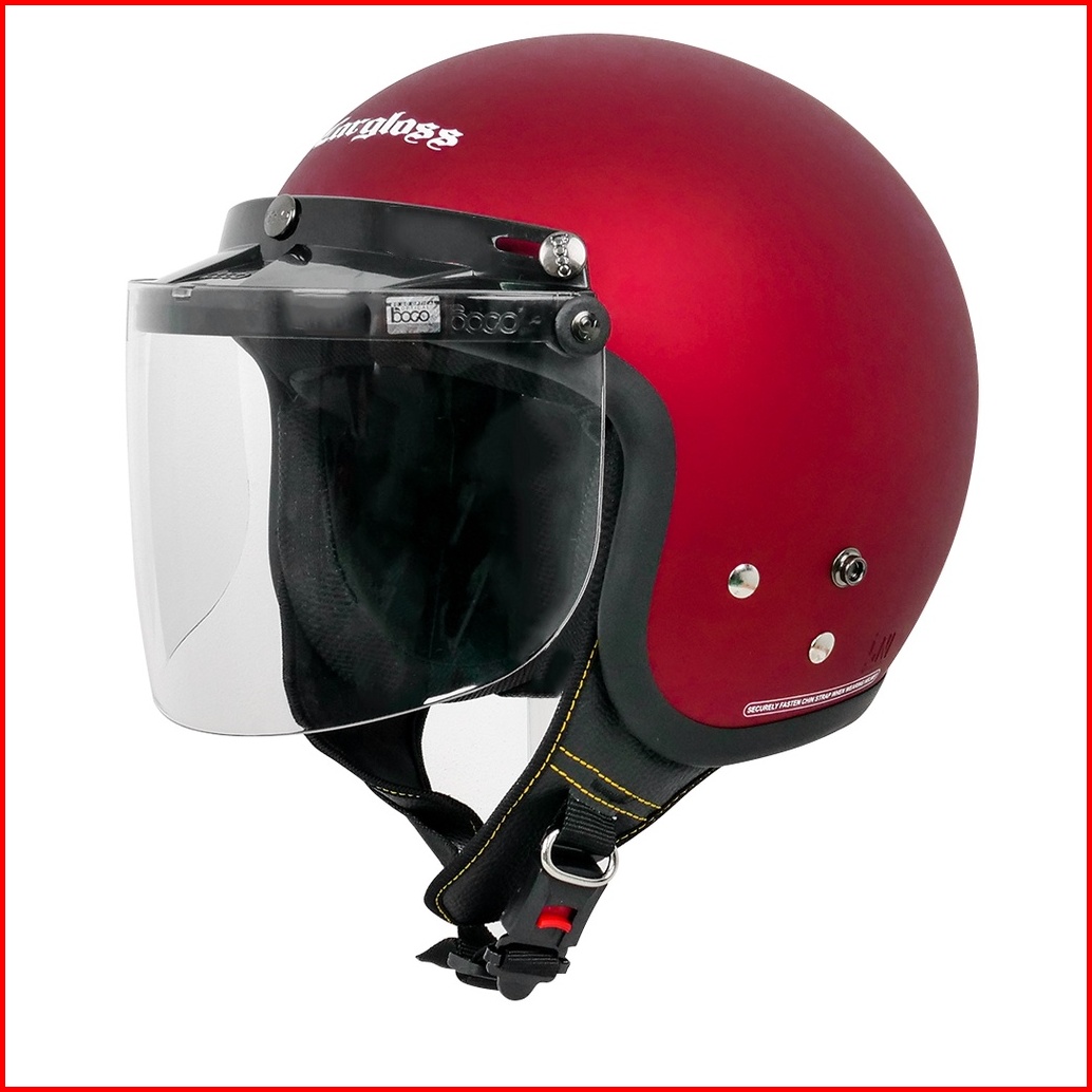 Cargloss Cfm Retro Visor Flat Clear Helm Half Face - Deep Red Met Doff
