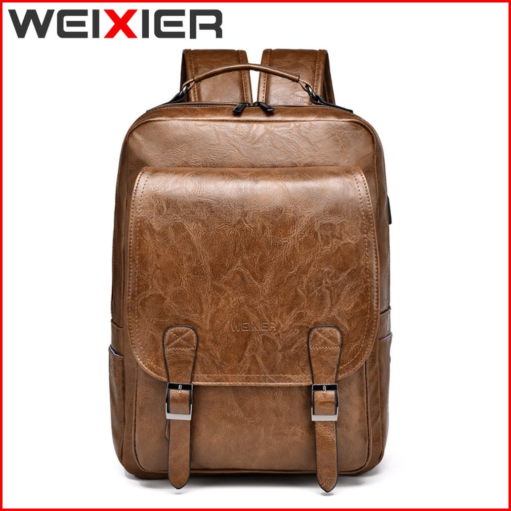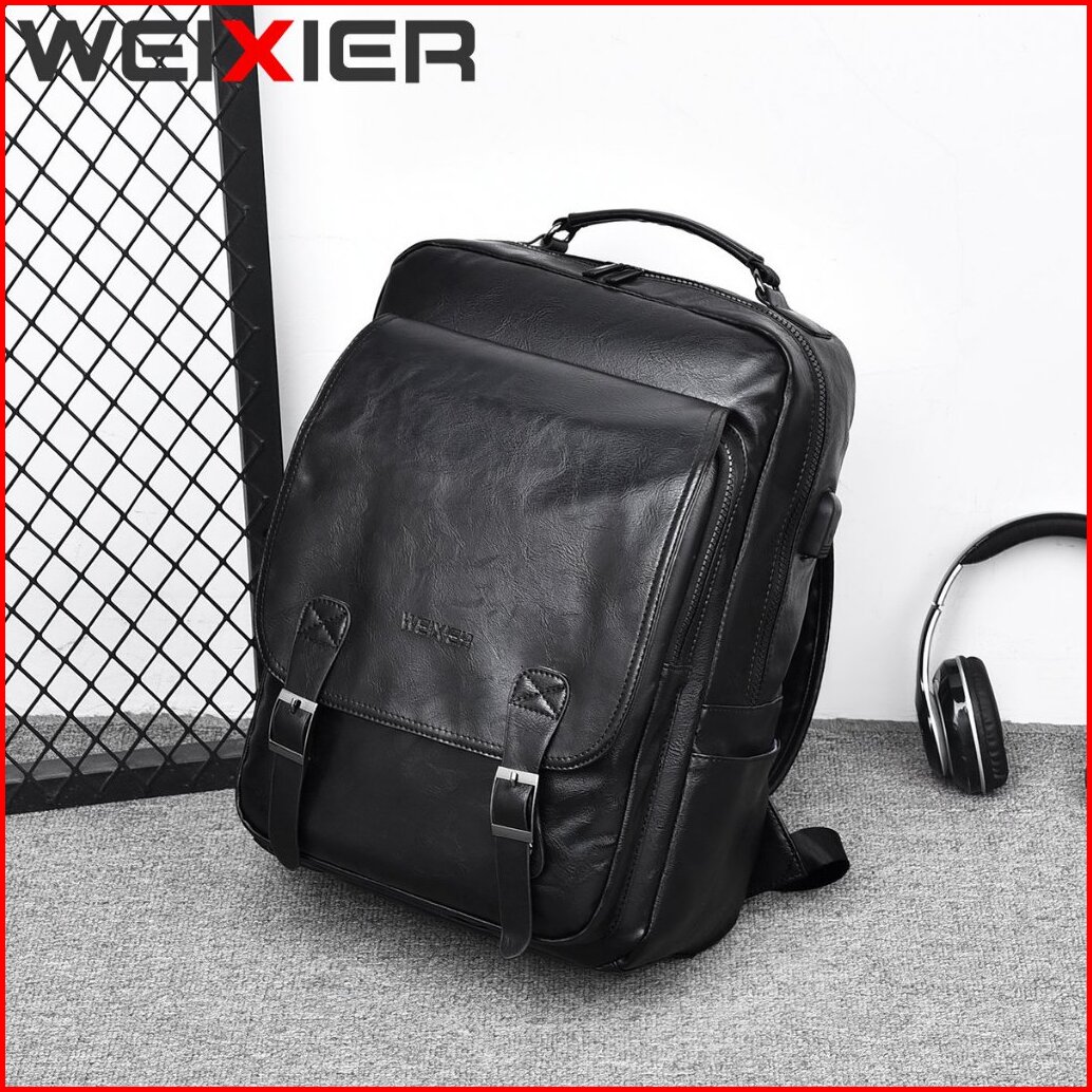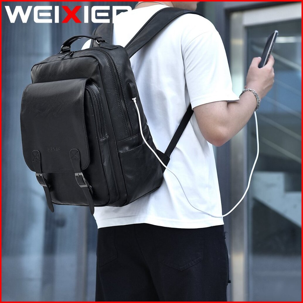 Weixier B677 Tas Punggung Pria Kulit Ransel Laptop Usb Port Wx-os