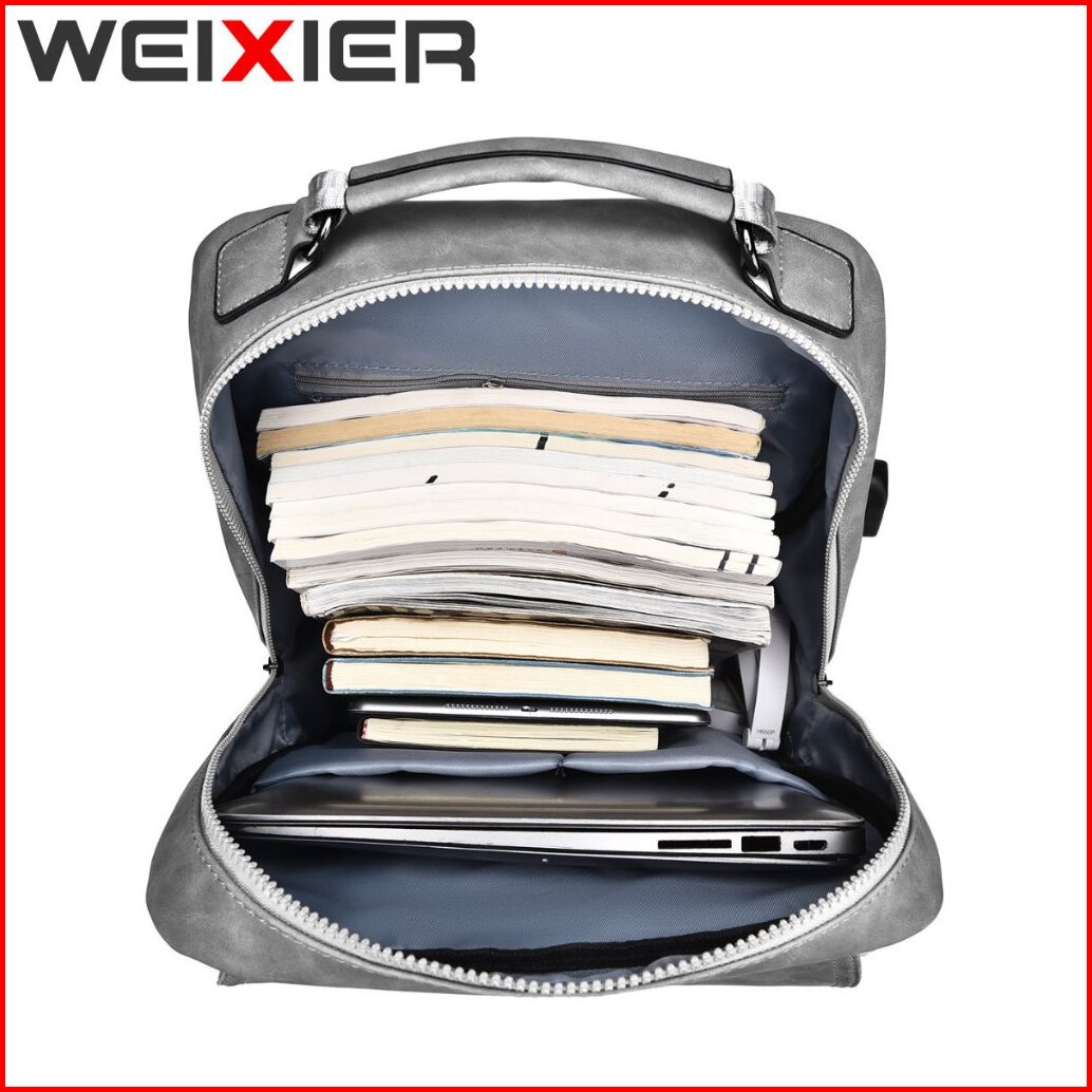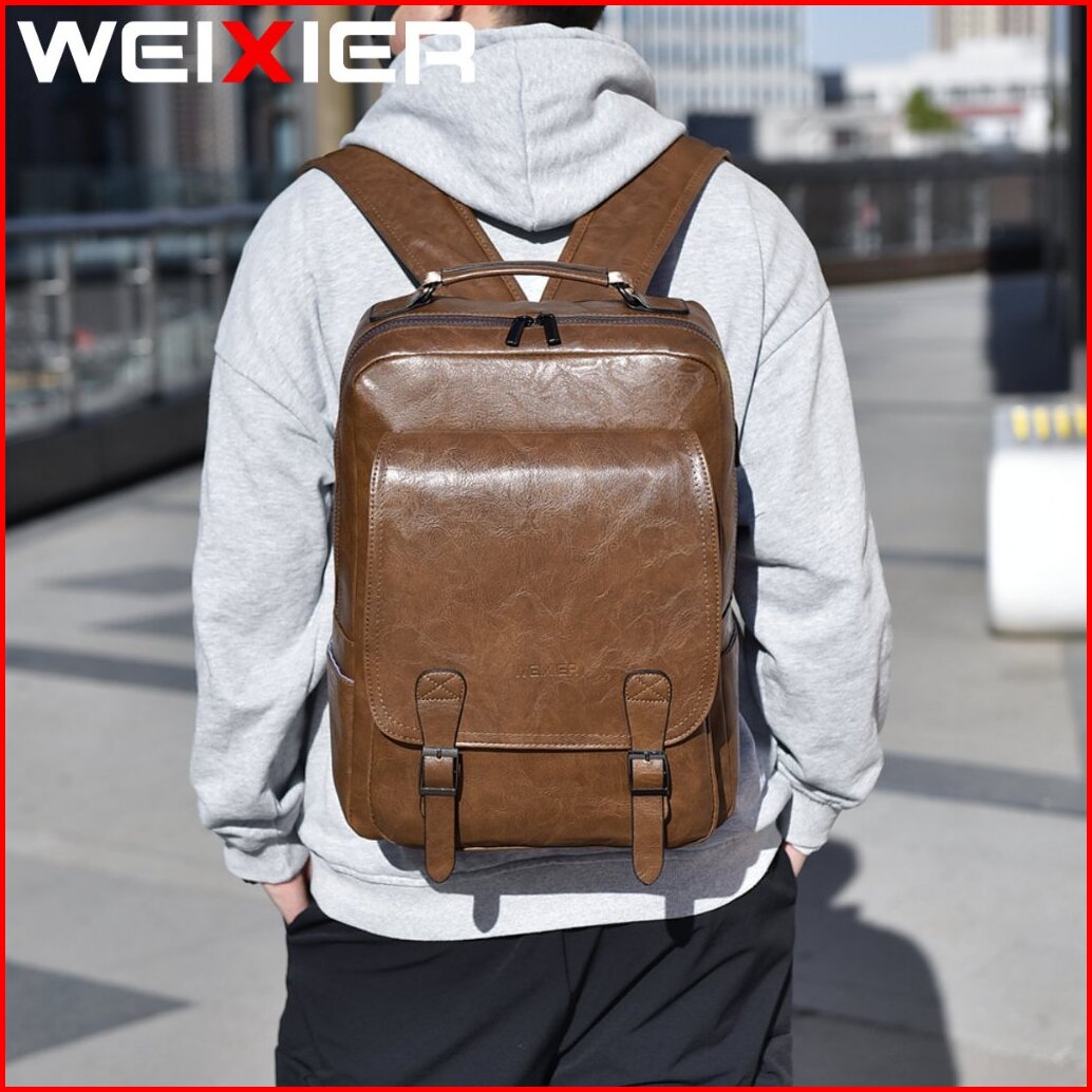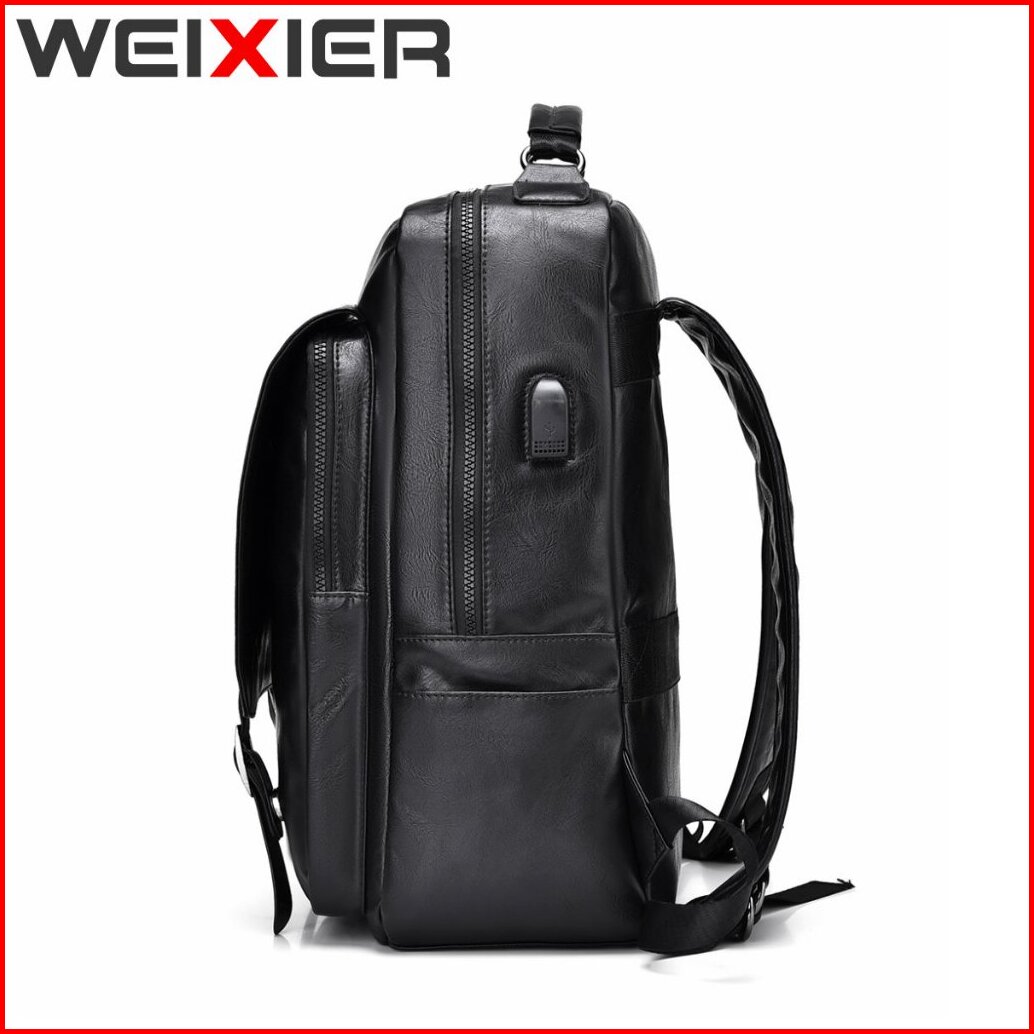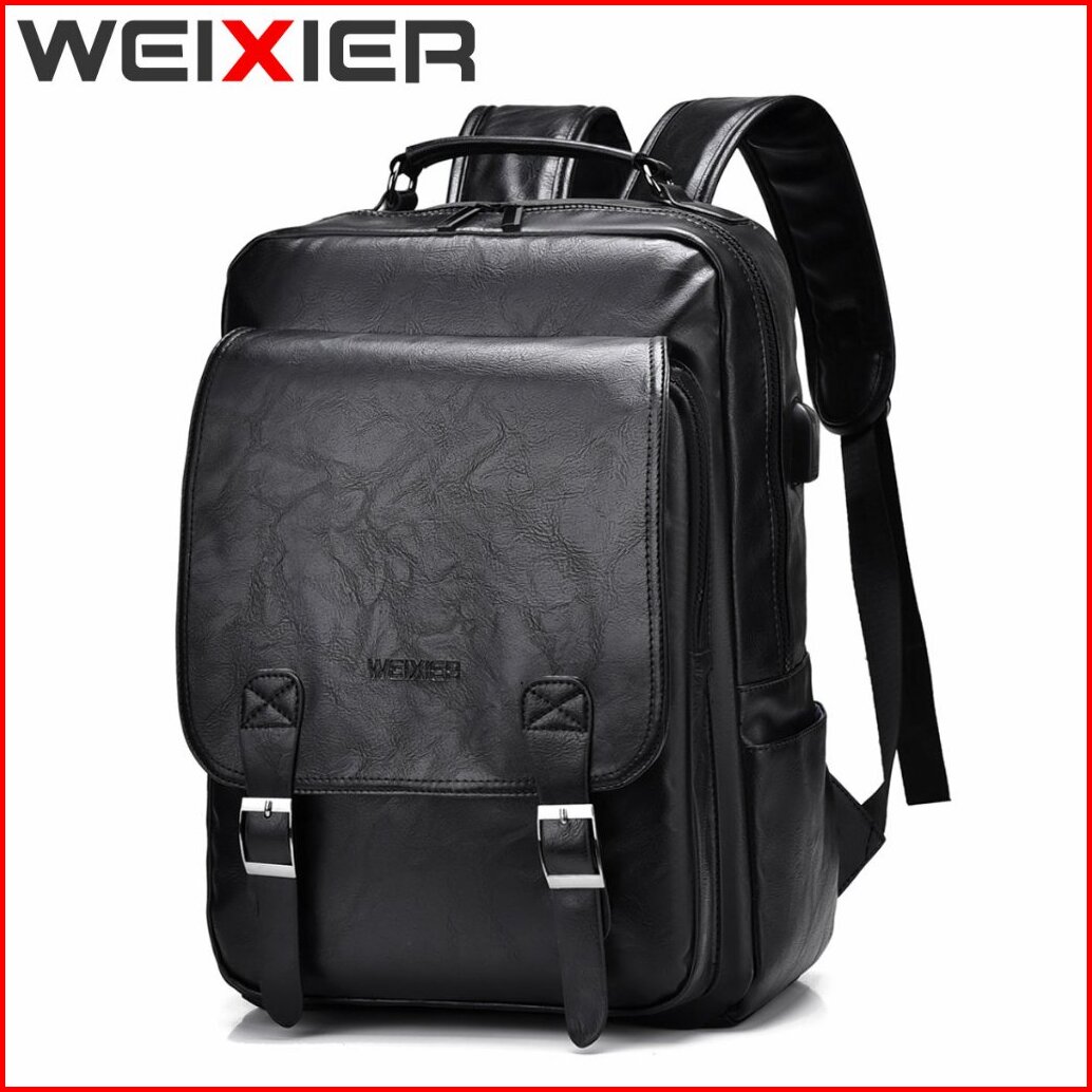 Weixier B677 Tas Punggung Pria Kulit Ransel Laptop Usb Port Wx-os