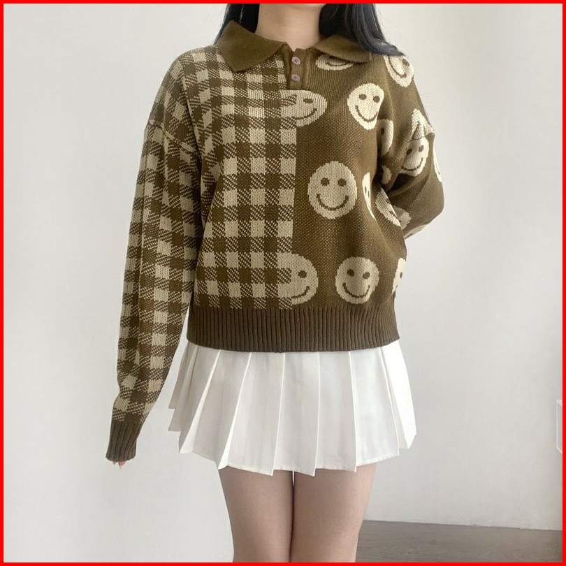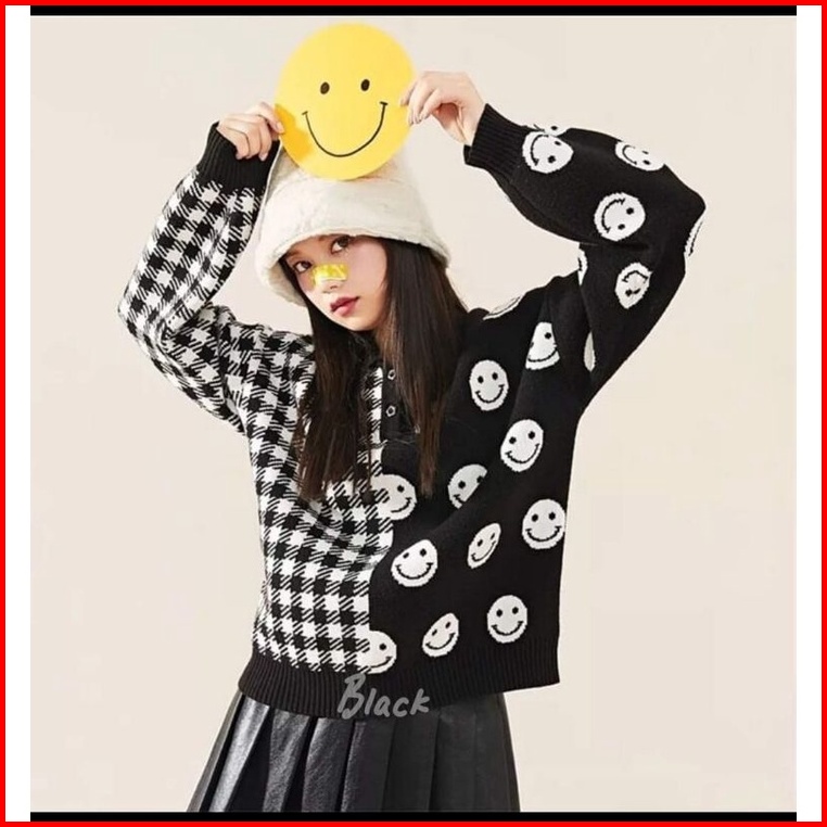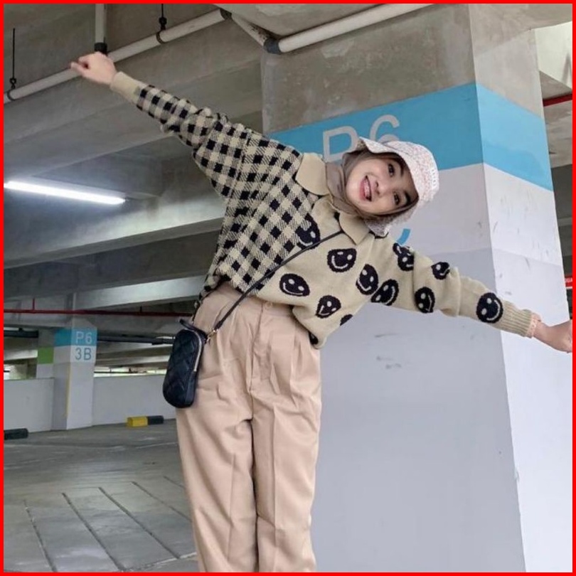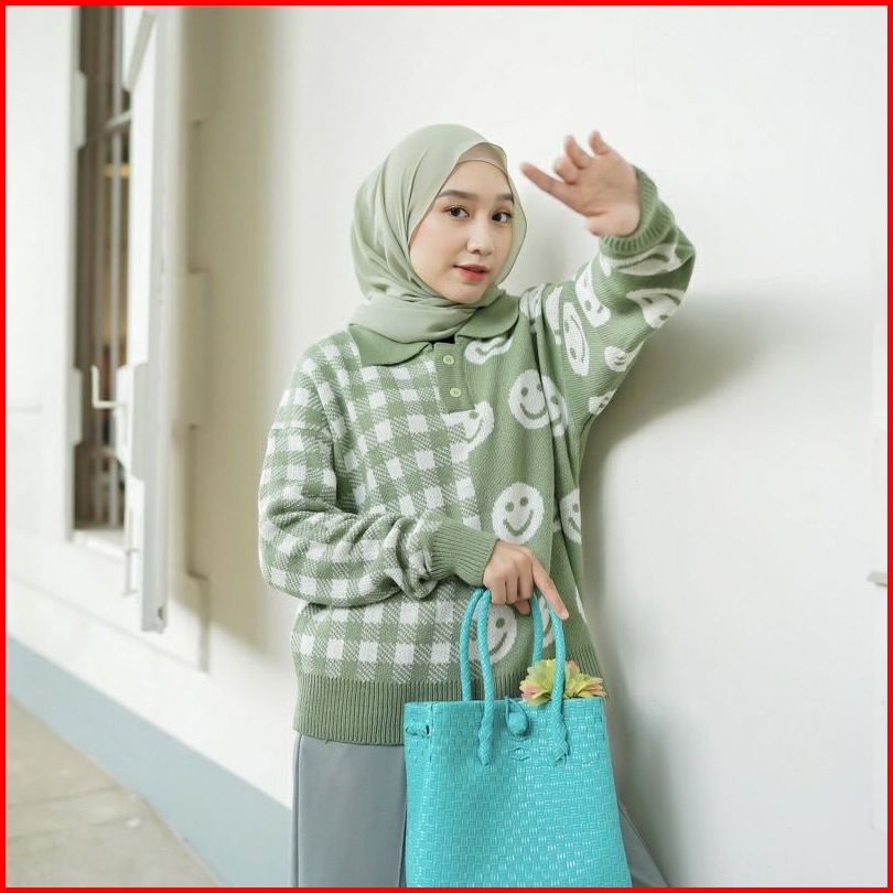 Sweater Rajut Wanita Comfort Motif Kotak Smile Brandad