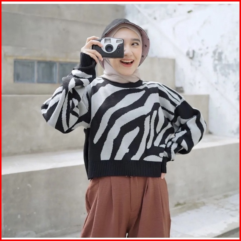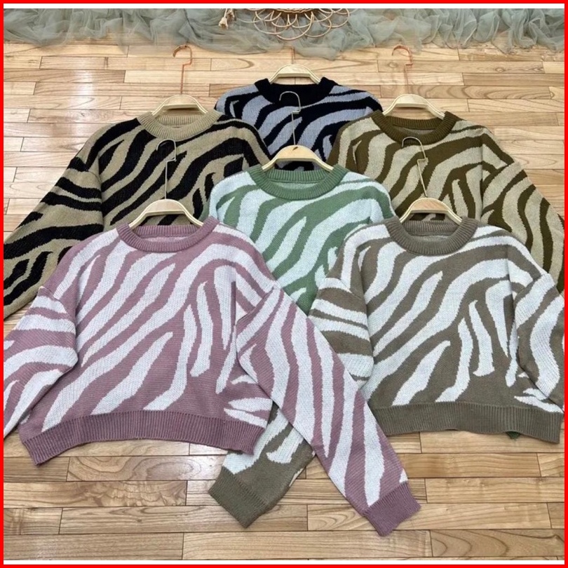 Zebra Knite Sweater Sweater Rajut Wanita Murah