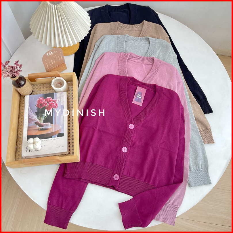 Zalina Cardigan Rajut Wanita Motif Polos Berkancing