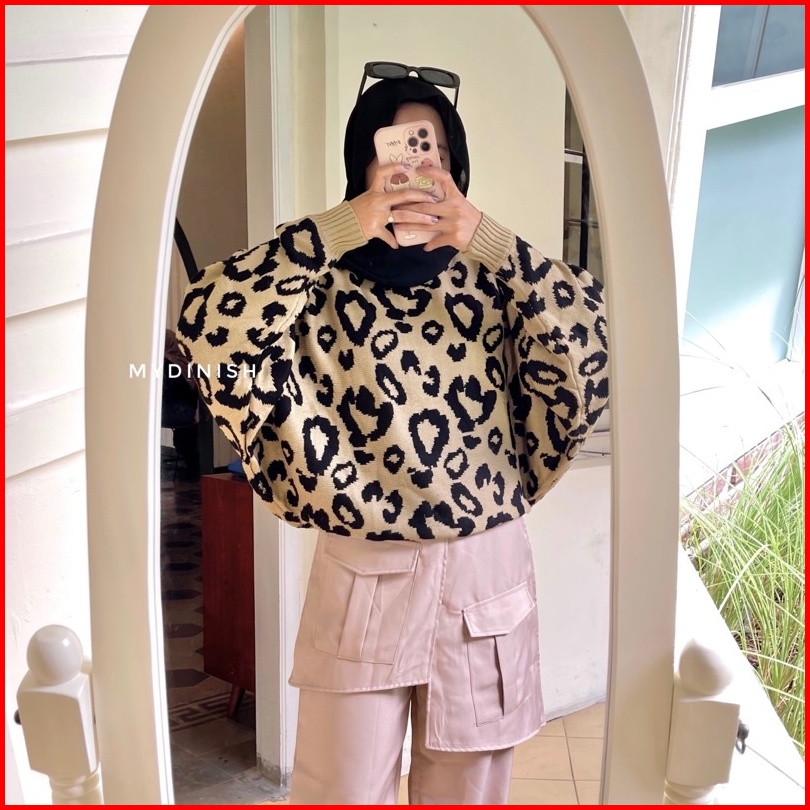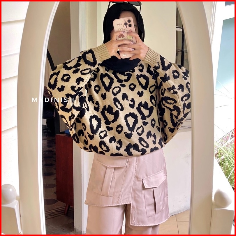 Lizzi Leopard Batwing - Atasan Rajut Wanita