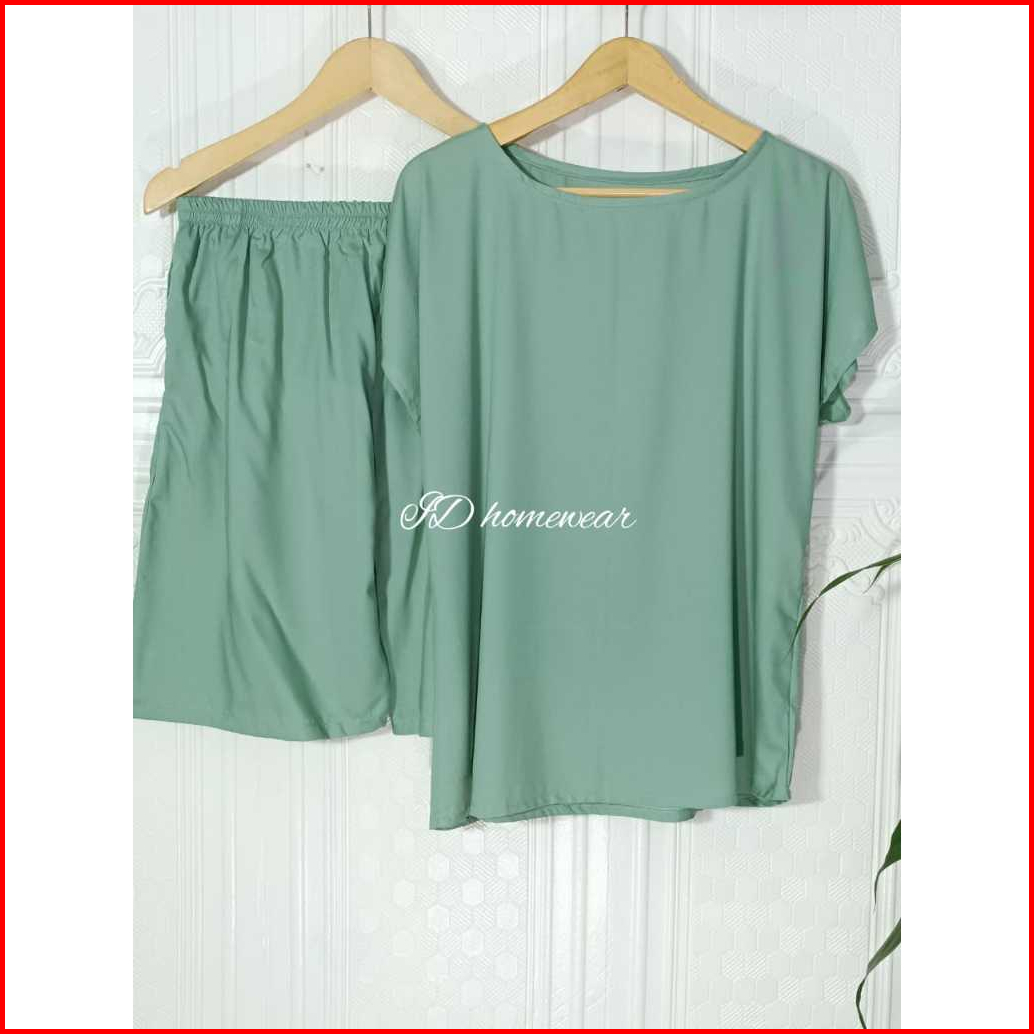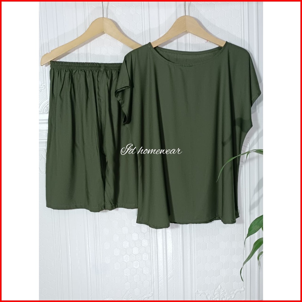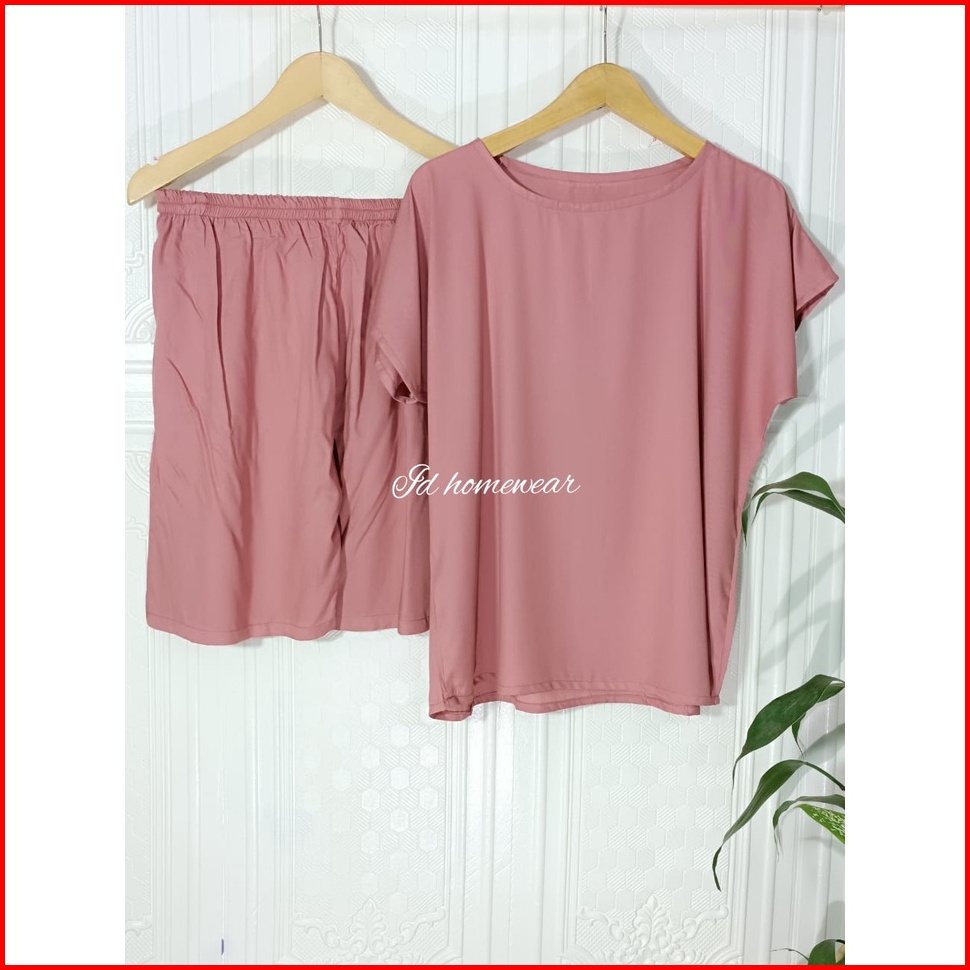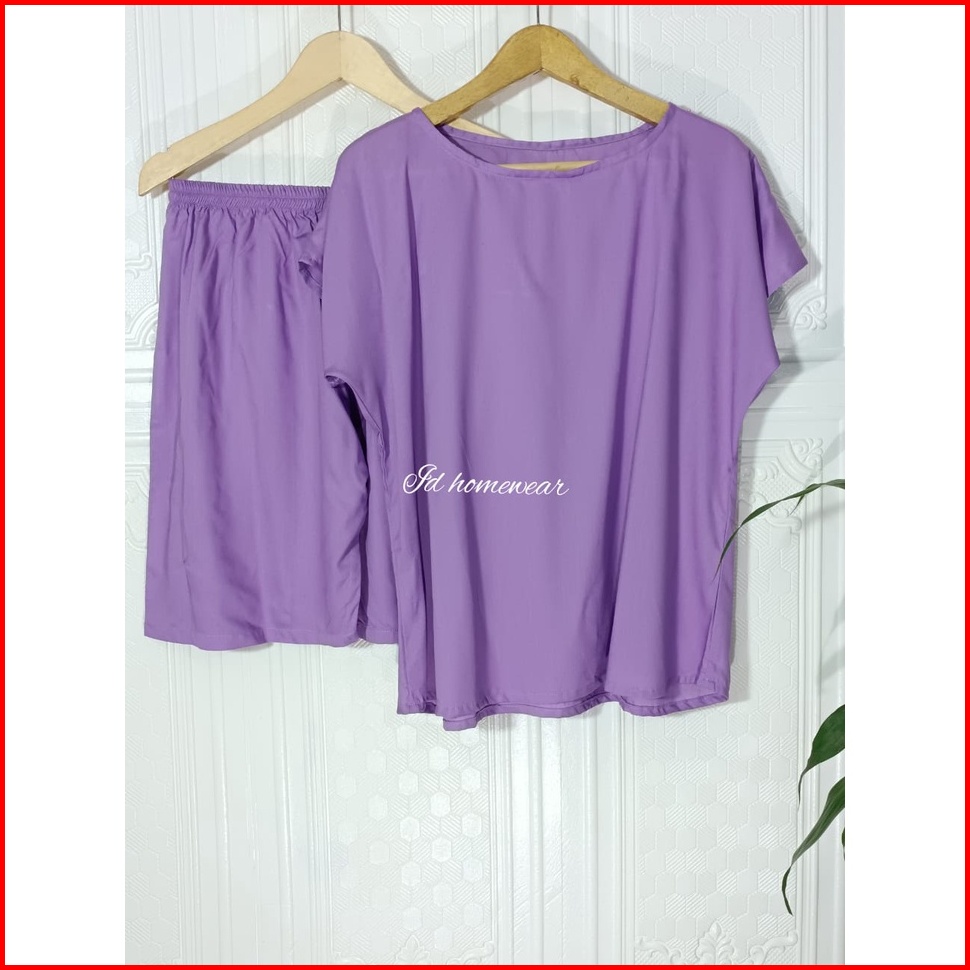 Setelan Babydoll Dewasa Wanita Jumbo Rayon Celana Pendek Polos