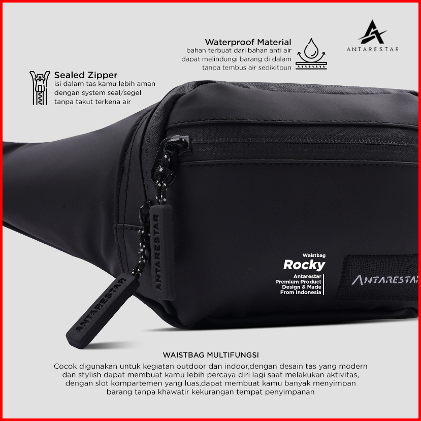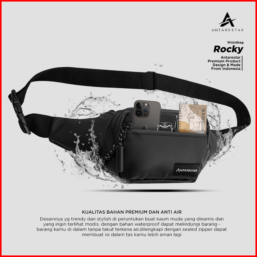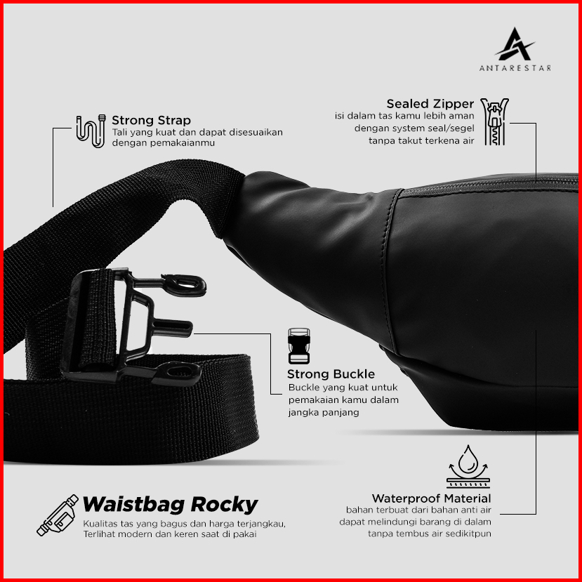 Tas Selempang Pria Waterproof Waistbag Casual Anti Air Tas Slempang Pria Tas Pinggang Rocky Antarestar